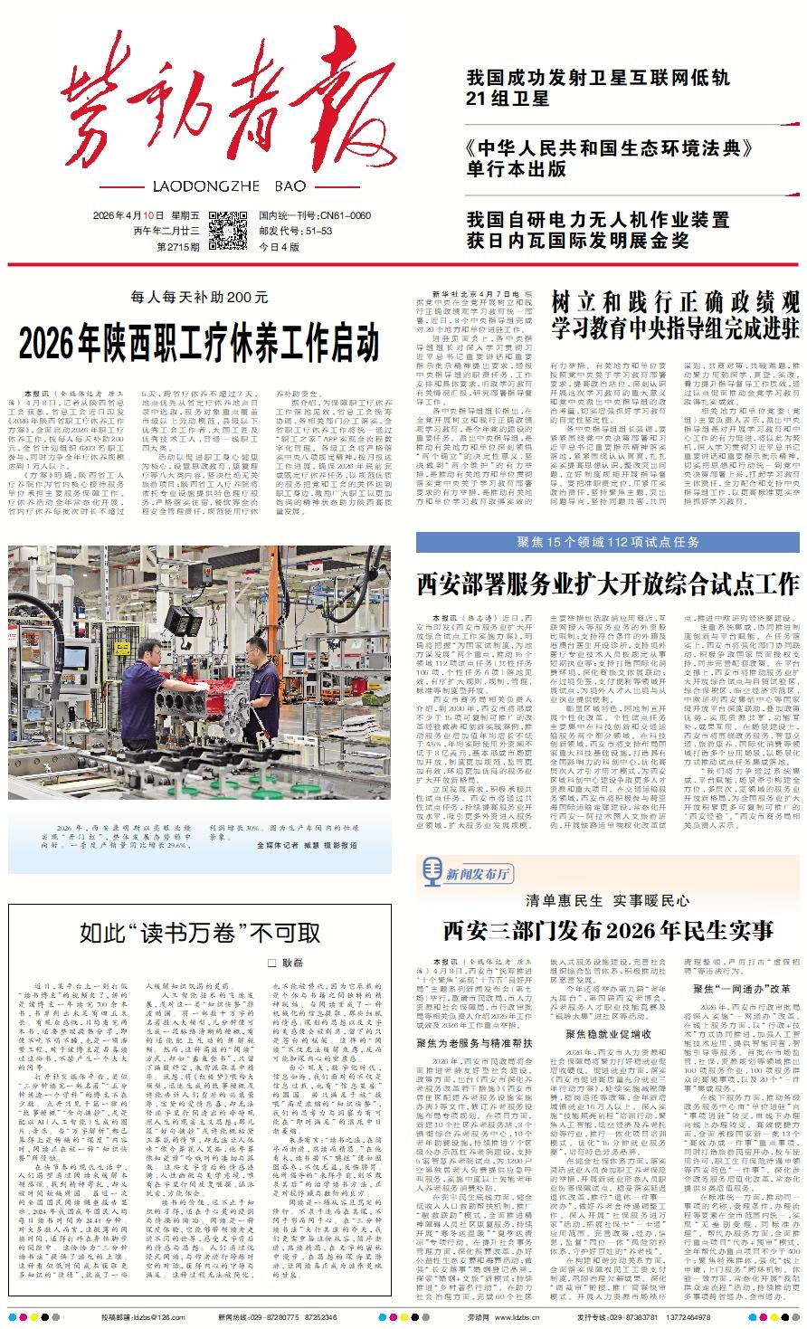 本报讯 (全媒体记者 唐玉洁) 4月8日,记者从陕西省总工会获悉,省总工会近日印发《2026年陕西省职工疗休养工作方案》,全面启动2026年职工疗休养工作,按每人每天补助200元,全省计划组织6203名职工参与,同时力争全年疗休养规模达到1万人以上。 《方案》明确,陕西省工人疗养院作为省内核心接待服务单位承担主要服务保障工作。疗休养活动全年常态化开展,省内疗休养每批次时长不超过5天、跨省疗休养不超过7天,地点优先从省定疗休养地点目录中选取,服务对象重点覆盖市级以上劳动模范、县级以下优秀工会工作者、大国工匠及优秀技术工人、普通一线职工四大类。 活动以促进职工身心健康为核心,设置思政教育、康复理疗等八大类内容,坚决杜绝无关旅游项目;陕西省工人疗养院将依托专业设施提供特色理疗服务,严格落实住宿、餐饮等全流程安全管理责任,规范使用疗休养补助资金。 据介绍,为保障职工疗休养工作落地见效,省总工会统筹协调、各相关部门分工落实,全省职工疗休养工作将统一通过“职工之家”APP实现全流程数字化管理。各级工会将严格落实中央八项规定精神,按月报送工作进展,确保2026年底前完成既定疗休养任务,以规范优质的服务把党和工会的关怀送到职工身边,激励广大职工以更加饱满的精神状态助力陕西高质量发展。