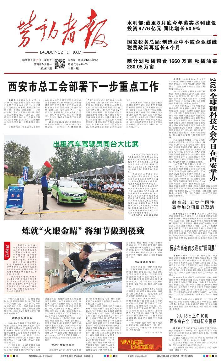 9月15日上午,陕西省首届“三秦工匠杯”职工职业技能大赛出租汽车(巡游网约)驾驶员技能决赛在西安开赛。63名选手同台竞技,比理论、赛技巧、讲安全、论服务,来一场出租汽车(巡游网约)驾驶员的“大比武”。 陕西省人大常委会副主任、省总工会主席郭大为,中华全国总工会经济部副部长姜文良,省总工会常务副主席王军、副主席赵霞等领导出席大赛。 陕西省首届“三秦工匠杯”职工职业技能大赛以“喜迎二十大·奋进新征程”为主题,聚焦秦创原产业链创新链、重大项目、重大工程和新就业形态等领域,将在制造、能源和服务等三个重点行业,遴选出综采维修电工、瓦斯检查工、汽车装调工、钳工、出租汽车(巡游网约)驾驶员、继电保护工等6个工种列入省级一类大赛,作为本次大赛的竞赛项目。 全媒体记者 苗莹 摄影报道