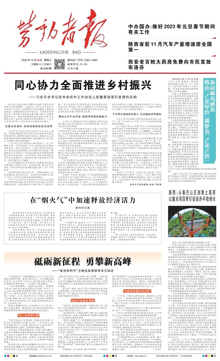 中办国办:做好2023年元旦春节期间有关工作 陕西省前11月汽车产量增速居全国第一 西安老百姓大药房免费向市民发放布洛芬