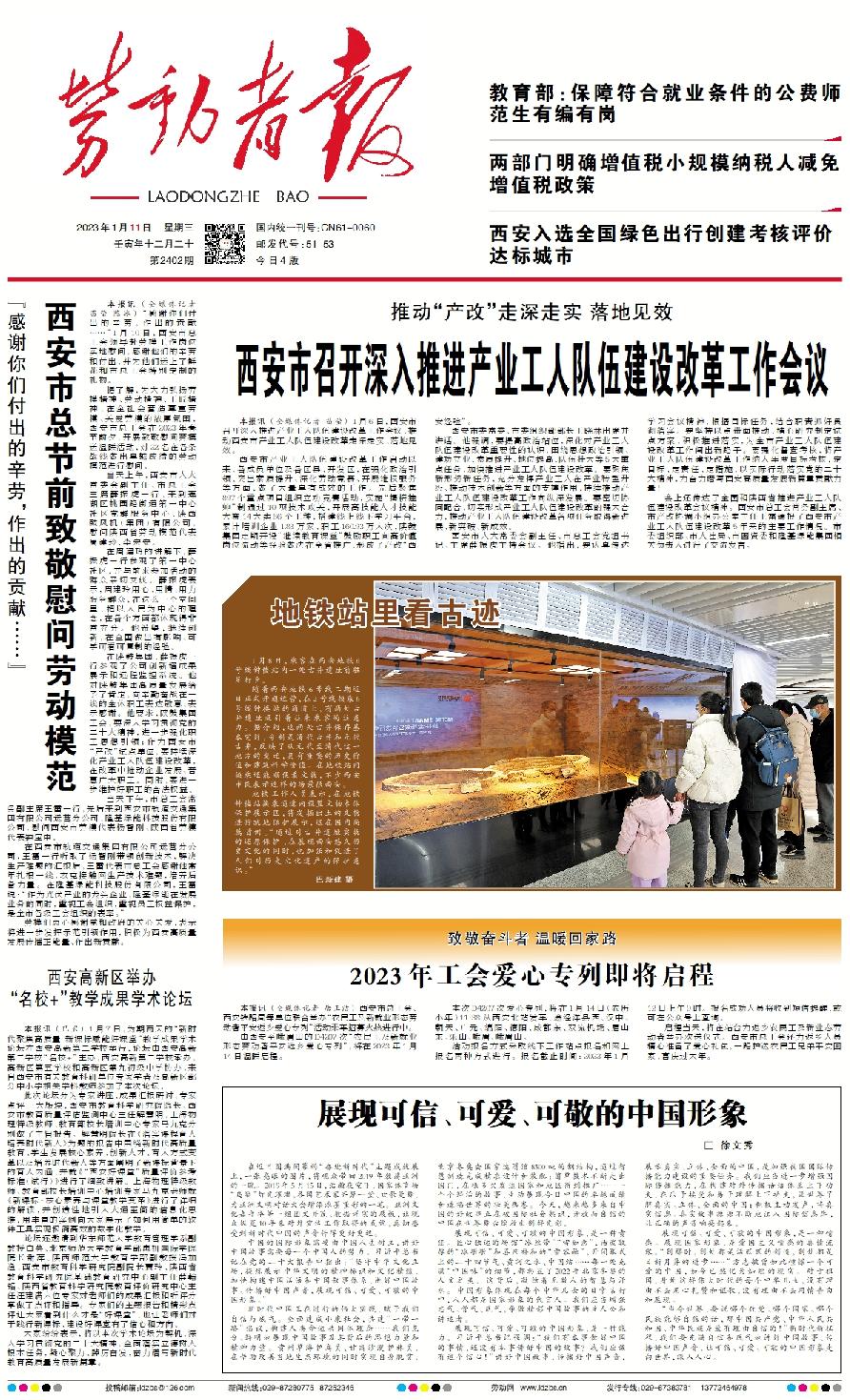 本报讯 (全媒体记者 苗莹 陈冰) “感谢你们付出的辛劳,作出的贡献……”1月10日,西安市总工会领导赴劳模工作岗位实地慰问,感谢他们的辛劳和付出,并为他们送上了鲜花和市总工会特别定制的礼物。 据了解,为大力弘扬劳模精神、劳动精神、工匠精神,在全社会营造尊重劳模、关爱劳模的浓厚氛围,西安市总工会在2023年春节前夕,开展致敬慰问劳模送温暖活动,对22名在各条战线做出卓越成绩的劳动模范进行慰问。 当天上午,西安市人大常委会副主任、市总工会主席薛振虎一行,来到莲湖区桃园路街道第一中心社区党群服务中心、陕西鼓风机(集团)有限公司,慰问陕西省劳动模范代表周建玲、李宏安。 在周建玲的讲解下,薛振虎一行参观了第一中心社区,并与前来参加活动的群众亲切交谈。薛振虎表示,周建玲用心、用情、用力服务群众,在这么一个空间里,把以人民为中心的理念,在各个方面都体现得非常充分。他希望,继续创新,在全国做出有影响、可学可看可复制的经验。 在陕鼓集团,薛振虎一行参观了公司创新墙成果展示和远程监控系统。他对陕鼓集团高质量发展给予了肯定,向辛勤奋战在一线的全体职工表达敬意、表示感谢。他要求,陕鼓集团工会,要深入学习贯彻党的二十大精神,进一步强化职工思想引领;作为西安市“产改”试点单位,要持续深化产业工人队伍建设改革,在改革中推动企业发展、普惠广大职工。同时,要进一步维护好职工的合法权益。 当天下午,市总工会常务副主席王雷一行,先后来到西安市轨道交通集团有限公司运营分公司、隆基绿能科技股份有限公司,慰问西安市劳模代表杨智刚、陕西省劳模代表钟宝申。 在西安市轨道交通集团有限公司运营分公司,王雷一行听取了杨智刚带领创新技术,解决生产难题的汇报后,王雷代表市总工会感谢他常年扎根一线,攻克接触网生产技术难题,培养后备力量。在隆基绿能科技股份有限公司,王雷说:“作为光伏产业的龙头企业,隆基绿能在发展业务的同时,重视工会组织,重视员工权益保护,是全市各级工会组织的表率。” 劳模们衷心感谢党和政府的关心关爱,表示将进一步发挥示范引领作用,积极为西安高质量发展传播正能量、作出新贡献。