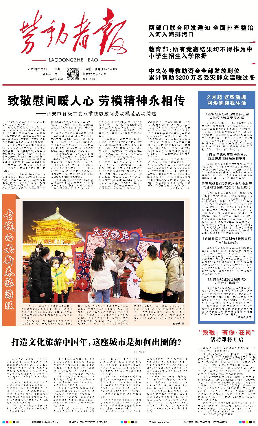 本报讯 (全媒体记者 臧慧) 春暖华夏,万物生发。新的一年如约而至。    冬虽浓,春已至。不一样的春节,一样的坚守。    春节,当万家团聚的时候,有这样一群人,他们放弃了一年一度最隆重的亲人相聚机会,他们在坚守职责中惦念亲情,这份充满亲情渴望的坚守,成为一道春节期间温暖而又独特的风景。    春节假期已经结束,城市的“治愈者”“清洁者”“疏导者”“守卫者”“搬运者”,他们在平凡中的坚守,细微处的奉献,令人肃然起敬。    今年,劳动者报社将推出“致敬!劳动者”系列公益活动。为向春节期间坚守在岗的劳动者致敬,元宵节前夕,由劳动者报社、西安市土门工人文化宫共同主办的“致敬”系列第一弹——“致敬!有你在岗”相声专场主题活动将于2月3日(正月十三)14时在土门工人文化宫举办,届时,将邀请百余名春节坚守岗位的劳动者一起听相声、吃元宵、逛书屋、看画展,致敬“春节守岗人”,共祝元宵节快乐。    活动现面向全社会发出征集令,诚邀100名春节在岗的劳动者报名参加。报名方式:关注劳动者报社微信公众号,私信留言单位+姓名+电话+人数;报名截止日期2023年2月2日17时。     本次活动不收取任何费用。
