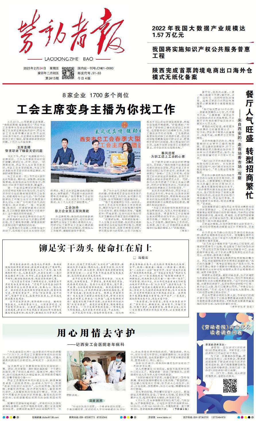 2月22日,小雨淅淅又添寒意,“春风送真情 援助暖民心”西安市总工会春季大型就业招聘活动的第二场工会主席直播送岗活动中,西安市总工会主席带着8家优质企业的1700多个岗位,在直播间向求职者介绍用工招工情况,解答求职者关切的问题,上百万人在线收看。主席直聘 替求职者了解最关切问题 当天下午,西安广电融媒体中心直播间内。工作人员紧张而有序地忙碌着,调试灯光、声音、机位,一切准备就绪,西安市人大常委会副主任、市总工会主席薛振虎,市总工会常务副主席王雷分别来到直播间,向求职者推荐岗位。 与工会主席一同上节目的8家企业有制造业、高科技、新能源、新业态等领域,有很强的实力的竞争力,带来的1700多个岗位种类多、数量多。 第一个走进直播间的是西安铂力特增材技术股份有限公司,企业代表介绍企业的基本情况和用工信息后,薛振虎转向企业代表:“你们对求职者的工作能力有什么特殊要求?多久可以上岗?”在听到企业代表的回答后,他又问到:“一枝一叶总关情,我再问一问求职者最关心的问题,员工的薪资福利和晋升空间是什么?这个情况你详细说说。” 对于每个走进直播间的企业代表,薛振虎都会向企业代表提出招聘流程、员工福利等问题,解答求职者在求职过程中最关切的内容。 “这是我们企业第二次参加这个活动了,虽然我们也会有其他形式的招聘会,但工会主席直播送岗的影响最大、效果最好。”西安顺丰速运的招聘专员李桦说,“我同事看了企业的直播链接,一会儿就有几万人来到直播间,有上千人表达了求职意向。”工会加持 助力企业员工双向奔赴 在直播现场,参加活动的求职者不仅可以直接投递简历,还可以抽奖赢得西安市总工会精心准备的礼包,同时可以了解西安工会爱心驿站和工会法律服务平台的情况,积极加入工会组织,提高权益保护意识。 除了向企业代表询问求职者关切的问题,薛振虎和王雷也会问及关于企业如何开展工会活动,如何提升员工技能,如何保障职工权益等内容。 “除了定期组织生日会、运动会,公司工会还会为单身员工举办相亲会,集团为每个员工在技能提升和晋升空间方面,都有明确的规定。”隆基乐叶(西咸新区)光伏科技有限公司代表王静怡在回答王雷的问题时说。 “技高者优酬。知识和技能是一个人立身立业的关键,我的建议是求职者要培养比较强的学习能力,既要学习专业知识,还要不断拓宽视野,学习更加多元的知识,让自己的能力和水平可以适应形势发展需要,伴随企业发展不断成熟。”薛振虎说:“企业除了要给职工提供良好的工作环境,还要确保他们的精神生活,为职工提供全方位的保障。工会组织就是要强化对职工的思想引领,通过劳动技能竞赛激发他们建功立业,更要维护好他们的权益,关心关爱他们的生活,这是企业建立健全工会组织的意义,对企业的长远发展有利。”春风送暖 为职工送上工会的心意 在了解西安顺丰速运的招聘情况后,王雷说:“物流快递行业是快速兴起的新就业形态,西安市总工会主动适应职工队伍新变化、新需求,创新推出‘全域+’工会工作机制,将全部工作向新就业形态倾斜,全部工作都植入新就业形态建会入会。同时,我们在全市建成了千家工会爱心驿站、司机之家等服务站点,为新就业形态劳动者提供工会特色服务。” 此次系列招聘活动,西安市总工会通过多元化、专业化,以及非常细致务实的招聘服务,帮助各类就业群体有的放矢地选择心仪岗位,为各类求职群体和企业搭建沟通的桥梁,精准匹配就业岗位。 “市总工会将持续开展系列就业创业帮扶活动,为用人单位和求职人员提供服务。希望各用工企业能够以本次招聘活动为平台,宣传企业,展示形象,广纳贤才。希望广大职工加入工会组织,踊跃参与工会活动,有困难、找工会,工会组织永远是值得你们信赖的娘家人!”薛振虎说。 (陈冰)