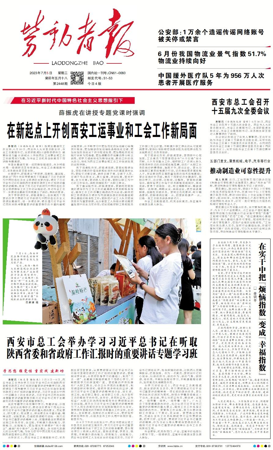 本报讯 (赵文青 骆红燕) 7月3日—4日,西安市总工会举办学习习近平总书记在听取陕西省委和省政府工作汇报时的重要讲话专题学习班,组织领导干部专题学习习近平总书记在听取省委和省政府工作汇报时的重要讲话、习近平主席在中国—中亚峰会上的主旨讲话、习近平总书记历次来陕考察重要讲话重要指示和习近平总书记关于主题教育的系列重要讲话和重要指示。 此次专题学习采用集中学习、专题讲座、分组领学、总结交流等形式,推动全会领导干部充分认识习近平总书记重要讲话的重大政治意义、历史意义、时代意义、现实意义,深刻领会其丰富内涵、精神实质、实践要求,迅速把思想和行动统一到习近平总书记重要讲话精神上来,完整准确全面贯彻落实到工作各方面、全过程,不断提升政治能力、思维能力、实践能力,更加坚定不移拥护“两个确立”、做到“两个维护”,以勇立潮头、争当时代弄潮儿的志向和气魄,为奋力谱写中国式现代化建设的陕西新篇章作出西安贡献。 在开班式上,西安市总工会党组副书记、常务副主席王雷要求,认真贯彻落实习近平总书记在听取省委和省政府工作汇报时的重要讲话,要做到常学常新,在抓好自身学习的基础上,利用“三会一课”、主题党日等组织党员干部潜心学习,不断拓展学习的深度和广度。要把党的声音传播给广大职工群众,结合正在开展的主题教育,利用调查研究等时机,组织开展多样化的宣讲,推动习近平总书记重要讲话精神进企业、进车间、进工地,走近职工身边、走进职工心里,充分发挥工会的媒体平台作用,全方位、多层次宣传,宣传报道广大职工的热烈反响和各单位贯彻落实的生动实践,展示在习近平总书记重要讲话精神指引下人民生活和经济社会发展取得的巨大变化。要围绕市委确定的目标任务和重点工作安排,主动融入、全面推进、找准结合点和切入点,更好发挥桥梁纽带作用,在服务全市工作大局中体现价值、彰显作为。 在4日下午的交流发言中,西安市建设交通工作委员会主任胡玉震表示,学习习近平总书记重要讲话精神是当前干好工会工作的根本遵循,要在理论学习上再深入再扎实,坚持读原著、学原文、悟原理,不断提升政治能力、思维能力、实践能力。西安市边家村工人文化宫主任花爱武表示,习近平总书记掷地有声、饱含深情的话语,让陕西人民精神振奋,倍受鼓舞。作为一名党员,要时刻牢记初心使命,以新的担当、新的作为、新的气象,固思想、转作风,不断加强理论学习,不断提高理论修养,发挥党员先锋模范作用。 在学习班结业式上,西安市总工会党组成员、副主席薛关文表示,学习贯彻落实习近平总书记重要讲话精神是一项长期的政治任务,要以举办此次培训班为契机,持续在学懂弄通做实上下功夫,求实效,带头当好宣传员、推动者、实践者,一级带着一级学,一级带着一级干。广大工会干部要提高政治站位,充分认识习近平总书记重要讲话精神的重大意义,确保工会工作永葆正确的政治方向。要聚焦工作实践,努力在推动本职工作落实上下真功,见实效。要营造宣传氛围,迅速在全市工会系统掀起学习宣传贯彻热潮,把学习好、宣传好、贯彻好习近平总书记重要讲话精神,作为当前头等大事和首要政治任务,确保习近平总书记重要讲话精神在全市工会系统落地生根。 市总领导,机关各部门、产业、直属单位处级以上领导干部、一级调研员、直属单位党政主要负责人参加。