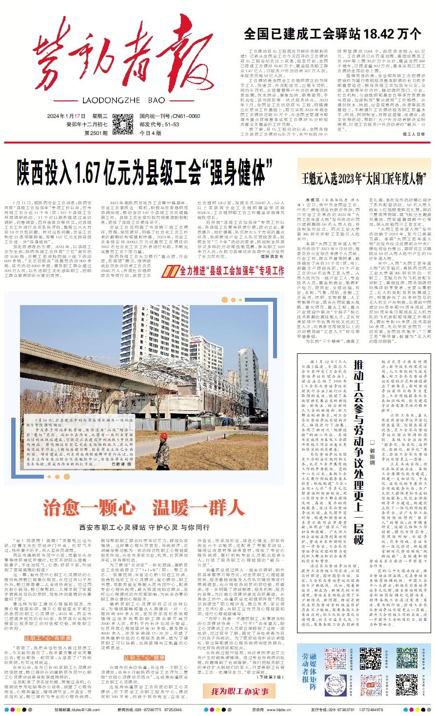 1月11日,据陕西省总工会消息:陕西省开展“县级工会加强年”专项工作以来,省市两级工会分赴11个市(区)107个县级工会开展调研活动。11个对口联系组通过走访调研、问卷调查、召开座谈会等形式,对县级工会工作进行全面系统评估,整理出六大方面18个共性问题。针对这些问题,省总工会制定21条保障措施,筹集1.67亿元支持县级工会进一步“强身健体”。    强化思想政治引领。2023年,以县级工会为主体,陕西各级工会开展“三忆”教育活动1590场、劳模工匠进校园线上线下活动600余场、“文艺轻骑兵”进基层活动900余场、读书活动4000余场,惠及职工群众超过200万人次,以先进职工文化感染职工,把职工群众紧密团结在党的周围。    2023年是陕西省地方工会集中换届年。省总工会紧抓这一契机,积极与省委组织部协调沟通,推动全省107个县级工会完成换届工作。县级工会主席均按同级党政副职配备,建强了县级工会领导班子。    省总工会还明确了市县镇三级工会聘任、管理、使用责任,明确了社会化工会工作者的薪酬结构和福利待遇。2023年,省总工会本级安排2009.2万元对基层工会聘任的1857名社会化工会工作者进行补助,不断充实基层工会干部力量。    陕西各级工会大力推行“重点建、行业建、兜底建”模式,吸纳新就业形态劳动者工会会员29.66万人;开展社会组织建会专项行动,新建工会社会组织1252家,发展会员25047人,50人以上互联网企业工会组织覆盖率达到92.65%,工会组织和工会工作覆盖面取得突破性增长。    自开展“县级工会加强年”专项工作以来,各县级工会聚焦思想引领、建功立业、素质提升、地位提高、队伍壮大5个方面的重点任务,纵深推进产业工人队伍建设改革;按照全省“三个年”活动的要求,因地制宜开展形式多样的劳动和技能竞赛,参与职工500余万人次,在助力县域经济发展中充分发挥了主力军作用。                据陕西发布
