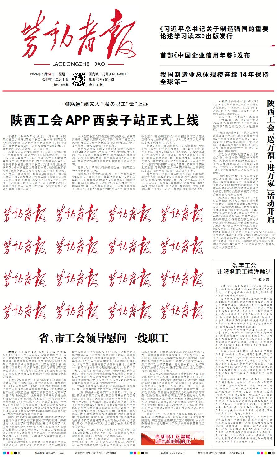 本报讯 (全媒体记者 臧慧) 1月23日,由陕西省总工会指导、西安市总工会主办的“陕西工会APP西安子站”上线仪式在西安正式举行。陕西省总工会党组成员、副主席王永岗致辞,西安市总工会党组副书记、常务副主席王雷主持。 西安市人大常委会副主任、市总工会党组书记、主席薛振虎,陕西省总工会网络中心主任、省工人疗养院党委书记、院长冯曦,西安市大数据局党组成员、副局长张伟明,西安市委网信办信息化处副处长张轩益,银川市总工会党组成员、副主席李石珍,榆林市总工会党组副书记、常务副主席李建林,成都市总工会网络与社会工作部部长徐莉,汉中市总工会办公室主任郭啸,陕西省总工会、银川市总工会、成都市总工会相关部门负责同志,西安市总工会班子成员,西安市各区县、产业、开发区、单列管理单位工会负责人,市总机关各部门、直属单位负责人,劳模工匠代表、新就业形态劳动者代表等出席上线仪式。 中华全国总工会网络工作部发来贺电,祝贺西安子站上线仪式圆满成功。同时,深圳市总工会、沈阳市总工会、杭州市总工会、厦门市总工会等20多个城市工会发来贺信,表示祝贺。 活动现场播放了西安工会形象宣传片和西安子站MG动画视频,对西安子站各项功能进行介绍。银川市总工会党组成员、副主席李石珍致贺词。市总工会党组成员、副主席陈曦就“陕西工会APP西安子站”的建设背景和发展目标进行介绍说明。 随后,与会领导共同触摸启动柱,“陕西工会APP西安子站”上线。 陕西省总工会党组成员、副主席王永岗在致辞中说,西安工会在陕西工会数字化建设中,组织体量最大,工会会员人数最多,起着举足轻重的作用。数字工会建设只有进行时,没有完成时,在工作实践中,要一手抓数字化建设,一手抓普惠性服务,突出“专业性”“服务性”和“安全性”,坚持服务中心工作、服务职工群众,牢牢把握数字工会建设正确方向,加强领导,加大投入,又好又快地做好数字化建设这篇“大文章”。 据悉,陕西工会APP西安子站项目按照“全省工会一张网”工作要求及市总工会“数字工会”建设工作统一部署,在陕西工会APP统一开发的基础上,立足西安工会工作实际,围绕“网聚职工正能量、网促奋进建功业、网上赋能助成长、网建服务新平台、网筑互动连心桥”的总要求,树立全市工会“一张网”思想和“一体化”意识,紧跟数字西安发展进程,建设陕西工会APP西安子站,全面构建数字工会建设赋能“全域+”工会工作机制。 截至目前,“陕西工会APP西安子站”已建成包括建会入会、在线信访、法律服务、爱心地图、就业服务、普惠商城、文化宫、悦工友、遇见Love、科创云、劳竞平台、劳模馆、培训学院、心理关爱、12351热线、农民工返乡、劳动者报、本地服务、智慧工会矩阵等19个模块,30多个服务的移动端综合系统。