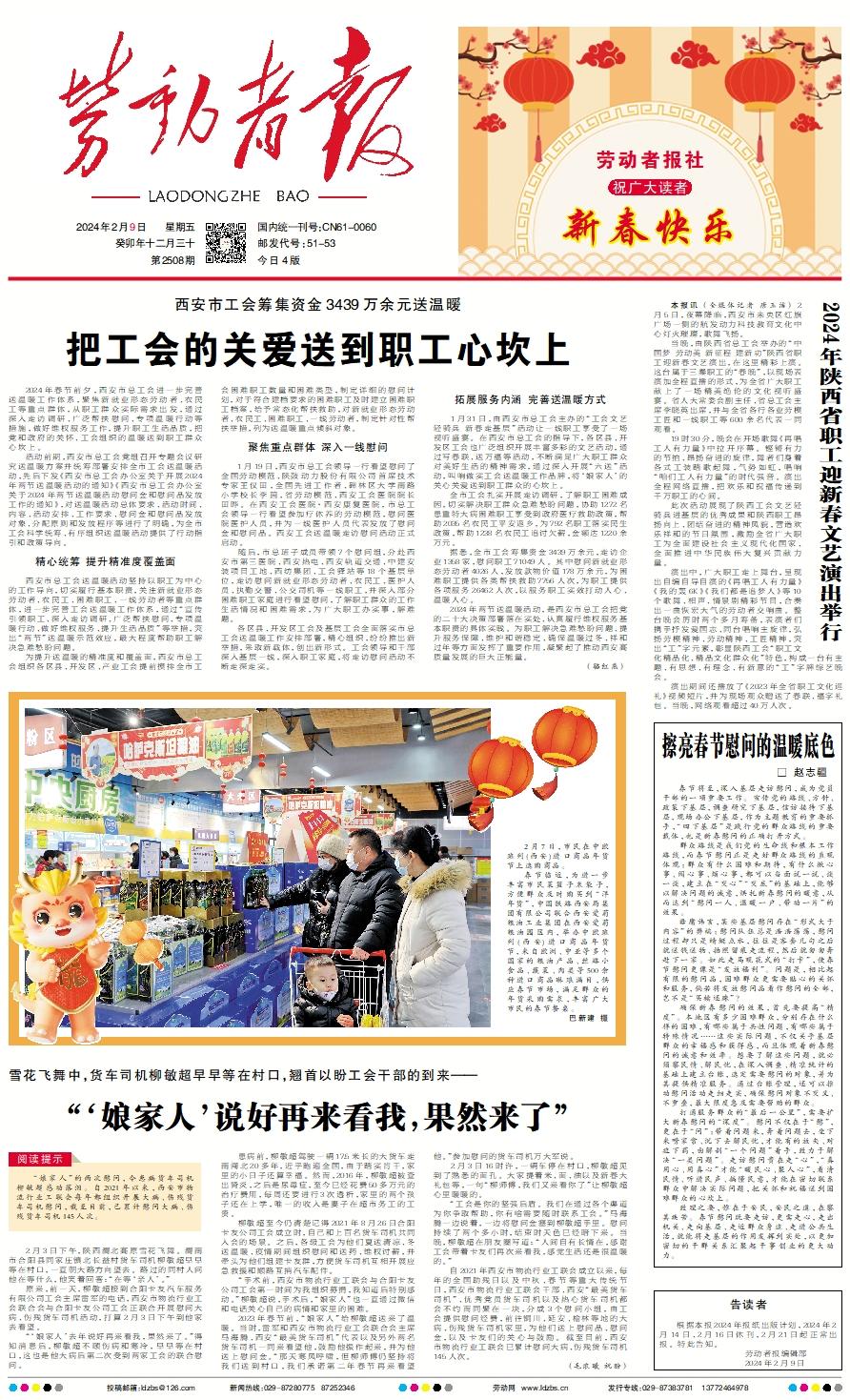 2024年春节前夕,西安市总工会进一步完善送温暖工作体系,聚焦新就业形态劳动者、农民工等重点群体,从职工群众实际需求出发,通过深入走访调研、广泛帮扶慰问、专项温暖行动等措施,做好维权服务工作,提升职工生活品质,把党和政府的关怀、工会组织的温暖送到职工群众心坎上。 活动前期,西安市总工会党组召开专题会议研究送温暖方案并统筹部署安排全市工会送温暖活动,先后下发《西安市总工会办公室关于开展2024年两节送温暖活动的通知》《西安市总工会办公室关于2024年两节送温暖活动慰问金和慰问品发放工作的通知》,对送温暖活动总体要求、活动时间、内容、活动安排、工作要求、慰问金和慰问品发放对象、分配原则和发放程序等进行了明确,为全市工会科学统筹、有序组织送温暖活动提供了行动指引和政策导向。精心统筹 提升精准度覆盖面 西安市总工会送温暖活动坚持以职工为中心的工作导向,切实履行基本职责,关注新就业形态劳动者、农民工、困难职工、一线劳动者等重点群体,进一步完善工会送温暖工作体系,通过“宣传引领职工、深入走访调研、广泛帮扶慰问、专项温暖行动、做好维权服务、提升生活品质”等举措,突出“两节”送温暖示范效应,最大程度帮助职工解决急难愁盼问题。 为提升送温暖的精准度和覆盖面,西安市总工会组织各区县、开发区、产业工会提前摸排全市工会困难职工数量和困难类型,制定详细的慰问计划,对于符合建档要求的困难职工及时建立困难职工档案,给予常态化帮扶救助,对新就业形态劳动者、农民工、困难职工、一线劳动者,制定针对性帮扶举措,列为送温暖重点倾斜对象。 聚焦重点群体 深入一线慰问 1月19日,西安市总工会领导一行看望慰问了全国劳动模范、陕鼓动力股份有限公司首席技术专家王仪田,全国先进工作者、碑林区大学南路小学校长李茵,省劳动模范、西安工会医院院长田晔。在西安工会医院·西安康复医院,市总工会领导一行看望参加疗休养的劳动模范,慰问医院医护人员,并为一线医护人员代表发放了慰问金和慰问品。西安工会送温暖走访慰问活动正式启动。 随后,市总班子成员带领7个慰问组,分赴西安市第三医院、西安热电、西安轨道交通、中建安装项目工地、西纺集团、工会驿站等18个基层单位,走访慰问新就业形态劳动者、农民工、医护人员、执勤交警、公交司机等一线职工,并深入部分困难职工家庭进行看望慰问,了解职工群众的工作生活情况和困难需求,为广大职工办实事,解难题。 各区县、开发区工会及基层工会全面落实市总工会送温暖工作安排部署,精心组织,纷纷推出新举措,采取新载体,创出新形式。工会领导和干部深入基层一线,深入职工家庭,将走访慰问活动不断走深走实。拓展服务内涵 完善送温暖方式 1月31日,由西安市总工会主办的“工会文艺轻骑兵 新春走基层”活动让一线职工享受了一场视听盛宴。在西安市总工会的指导下,各区县、开发区工会也广泛组织开展丰富多彩的文艺活动,通过写春联、送万福等活动,不断满足广大职工群众对美好生活的精神需求,通过深入开展“六送”活动,叫响做实工会送温暖工作品牌,将‘娘家人’的关心关爱送到职工群众的心坎上。 全市工会扎实开展走访调研,了解职工困难成因,切实解决职工群众急难愁盼问题,协助1272名患重特大病困难职工享受到政府医疗救助政策,帮助2035名农民工平安返乡,为792名职工落实民生政策,帮助1238名农民工追讨欠薪,金额达1220余万元。 据悉,全市工会筹集资金3439万余元,走访企业1358家,慰问职工71049人。其中慰问新就业形态劳动者4026人,发放款物价值178万余元,为困难职工提供各类帮扶救助7756人次,为职工提供各项服务26462人次,以服务职工实效打动人心、温暖人心。 2024年两节送温暖活动,是西安市总工会把党的二十大决策部署落在实处、认真履行维权服务基本职责的具体实践。为职工解决急难愁盼问题、提升服务保障、维护和谐稳定、确保温暖过冬、祥和过年等方面发挥了重要作用,凝聚起了推动西安高质量发展的巨大正能量。 (骆红燕)