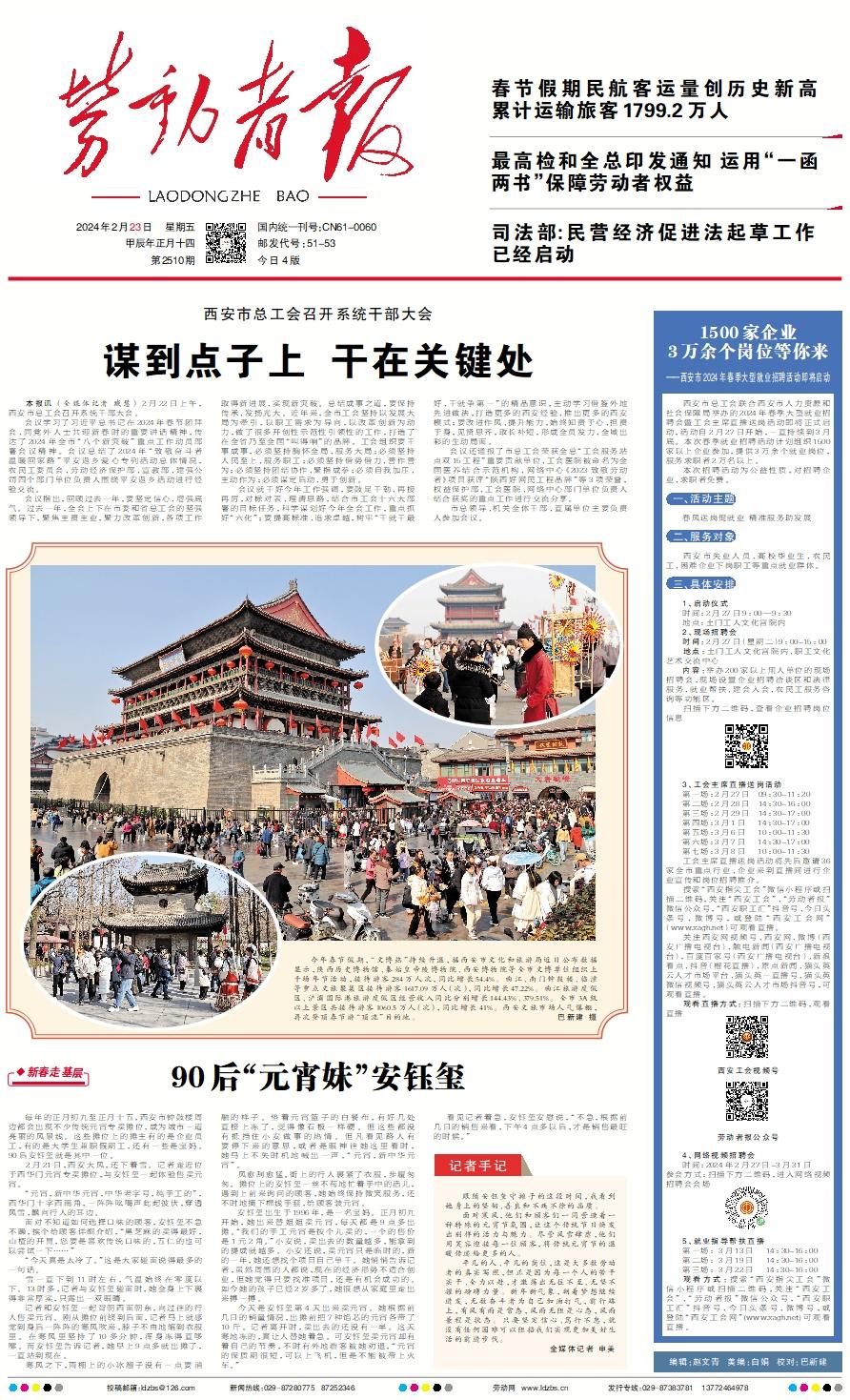 西安市总工会联合西安市人力资源和社会保障局举办的2024年春季大型就业招聘会暨工会主席直播送岗活动即将正式启动,活动自2月27日开始,一直持续到3月底。本次春季就业招聘活动计划组织1500家以上企业参加,提供3万余个就业岗位,服务求职者2万名以上。    本次招聘活动为公益性质,对招聘企业、求职者免费。 一、活动主题    春风送岗促就业 精准服务助发展 二、服务对象    西安市失业人员、高校毕业生、农民工、困难企业下岗职工等重点就业群体。 三、具体安排    1、启动仪式    时间:2月27日9:00—9:30    地点:土门工人文化宫院内    2、现场招聘会    时间:2月27日(星期二)9:00-15:00    地点:土门工人文化宫院内、职工文化艺术交流中心    内容:举办200家以上用人单位的现场招聘会,现场设置企业招聘洽谈区和法律服务、就业帮扶、建会入会、农民工服务咨询等功能区。    扫描下方二维码,查看企业招聘岗位信息        3、工会主席直播送岗活动    第一场:2月27日  09:30-11:20    第二场:2月28日  14:30-16:00    第三场:2月29日  14:30-17:00    第四场:3月1日   14:30-17:00    第五场:3月6日   10:00-11:30    第六场:3月7日   14:30-17:00    第七场:3月8日   10:00-11:30    工会主席直播送岗活动将先后邀请36家全市重点行业、企业来到直播间进行企业宣传和岗位招聘推介。    搜索“西安指尖工会”微信小程序或扫描二维码,关注“西安工会”、“劳动者报”微信公众号,“西安职工汇”抖音号、今日头条号、微博号,或登陆“西安工会网”(www.xagh.net)可观看直播。    关注西安网视频号、西安网、微博(西安广播电视台)、触电新闻(西安广播电视台),百度百家号(西安广播电视台)、新浪看点、抖音(榴花直播)、原点新闻、猫头英云人才市场平台、猫头英一直播号、猫头英微信视频号、猫头英云人才市场抖音号,可观看直播。    观看直播方式:扫描下方二维码,观看直播 西安工会视频号 劳动者报公众号    4、网络视频招聘会    时间:2024年2月27日-3月31日参会方式:扫描下方二维码,进入网络视频招聘会会场     5、就业指导帮扶直播    第一场: 3月13日   14:30-16:00    第二场: 3月19日   14:30-16:00     第三场: 3月22日   14:30-16:00    观看方式:搜索“西安指尖工会”微信小程序或扫描二维码,关注“西安工会”、“劳动者报”微信公众号,“西安职工汇”抖音号、今日头条号、微博号,或登陆“西安工会网”(www.xagh.net)可观看直播。