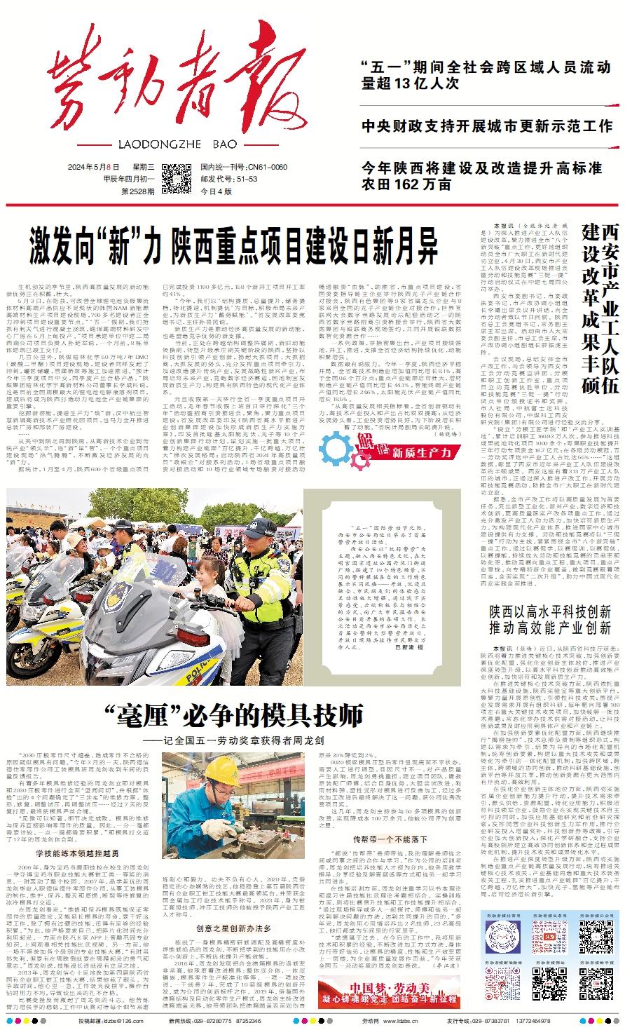 生机勃发的季节里,陕西高质量发展的新动能新优势正在积蓄、壮大。 5月3日,在乾县,可改善全球锂电池负极集流体材料高端产品供应不足现状的韩国NAM新能源高端材料生产项目建设现场,700多名建设者正全力冲刺项目建设重要节点。“‘五一’假期,我们抢抓有利天气进行混凝土浇筑,确保高端材料研发中心厂房在5月上旬投产。”项目承建单位中建二局西南公司项目负责人孙延军说,一个月前,8栋单体建筑已竣工交付。 几百公里外,陕煤榆林化学50万吨/年DMC(碳酸二甲酯)项目建设现场,建设者同样发起了冲刺,罐区储罐、管廊桥架等施工加速推进。“预计今年三季度项目中交,四季度产出合格产品。”陕煤集团榆林化学宇高新材料公司董事长李成科说,这是目前全国规模最大的锂电池电解液溶剂项目,建成后将成为陕西打造动力电池全产业链集群的重要引擎。 挖掘新潜能,提速生产力“焕”新,汉中航空智慧新城高新技术产业孵化园项目,也马力全开推进总装厂房和部装厂房建设。 …… 从关中到陕北再到陕南,从高新技术企业到传统产业“领头羊”,追“新”谋“智”,一个个重点项目建设现场“热气腾腾”,不断激发经济发展的向“新”力。 据统计,1月至4月,陕西600个省级重点项目已完成投资1100多亿元,158个新开工项目开工率约41%。 “今年,我们以‘结构提质、总量提升、储备提档、转化提速、机制提优’为目标,积极布局未来产业,为新质生产力‘蓄势赋能’。”省发展改革委党组书记、主任孙喜民说。 新质生产力是推动经济高质量发展的新动能,也是塑造竞争优势的新支撑。 当前,正处在跨越结构调整阵痛期、新旧动能转换期、转型升级承压期关键阶段的陕西,坚持以科技创新引领产业创新,扬起大抓项目、大抓招商、大抓发展的势头,充分发挥重点项目牵引力,加速改造提升传统产业、发展战略性新兴产业、布局培育未来产业、竞跑数字经济赛道,因地制宜发展新质生产力,构建具有陕西特色的现代化产业体系。 元旦收假第一天举行全省一季度重点项目开工活动,龙年春节收假上班首日举行深化“三个年”活动暨招商引资推进会,聚焦、聚力重点项目建设;省发展改革委印发《陕西省高水平推进产业创新集群建设加快形成新质生产力实施方案》,印发首批硅基太阳能光伏、光子等10个产业创新集群行动计划,谋划实施一批重大项目,着力构建产业链群“百亿提升、千亿跨越、万亿壮大”梯次发展格局;启动陕西省2024年高质量项目“政银企”对接系列活动,1场省级重点项目融资对接活动和10场行业领域专场融资对接活动畅通融资“血脉”,助推省、市重点项目建设;省国资委指导链主企业举行陕西光子产业链合作对接会,陕西有色集团等9家省属龙头企业与8家来自全国的光子产业链企业对接合作;世界互联网大会数字丝路发展论坛配套活动之一的陕西省数字丝路招商引资桥接会举行,陕西省大数据集团与银联商务现场签约,共同开展银联数据数智化资源合作…… 一系列政策、举措密集出台,产业项目接续落地、开工、推进,支撑全省经济结构持续优化、动能积聚增强。 数据最有说服力。今年一季度,陕西经济平稳开局。全省高技术制造业增加值同比增长8.1%,高于全国0.6个百分点;重点产业链群培育壮大,增材制造产业链产值同比增长44.1%,智能终端产业链产值同比增长24.6%,太阳能光伏产业链产值同比增长18.5%。 “从高质量发展相关指标看,全省创新驱动有力,高技术产业投入和产出占比双双提高;从经济发展势头看,工业投资增势良好,为下阶段增长积蓄了动能。”省统计局副局长胡清升说。 (杨晓梅)