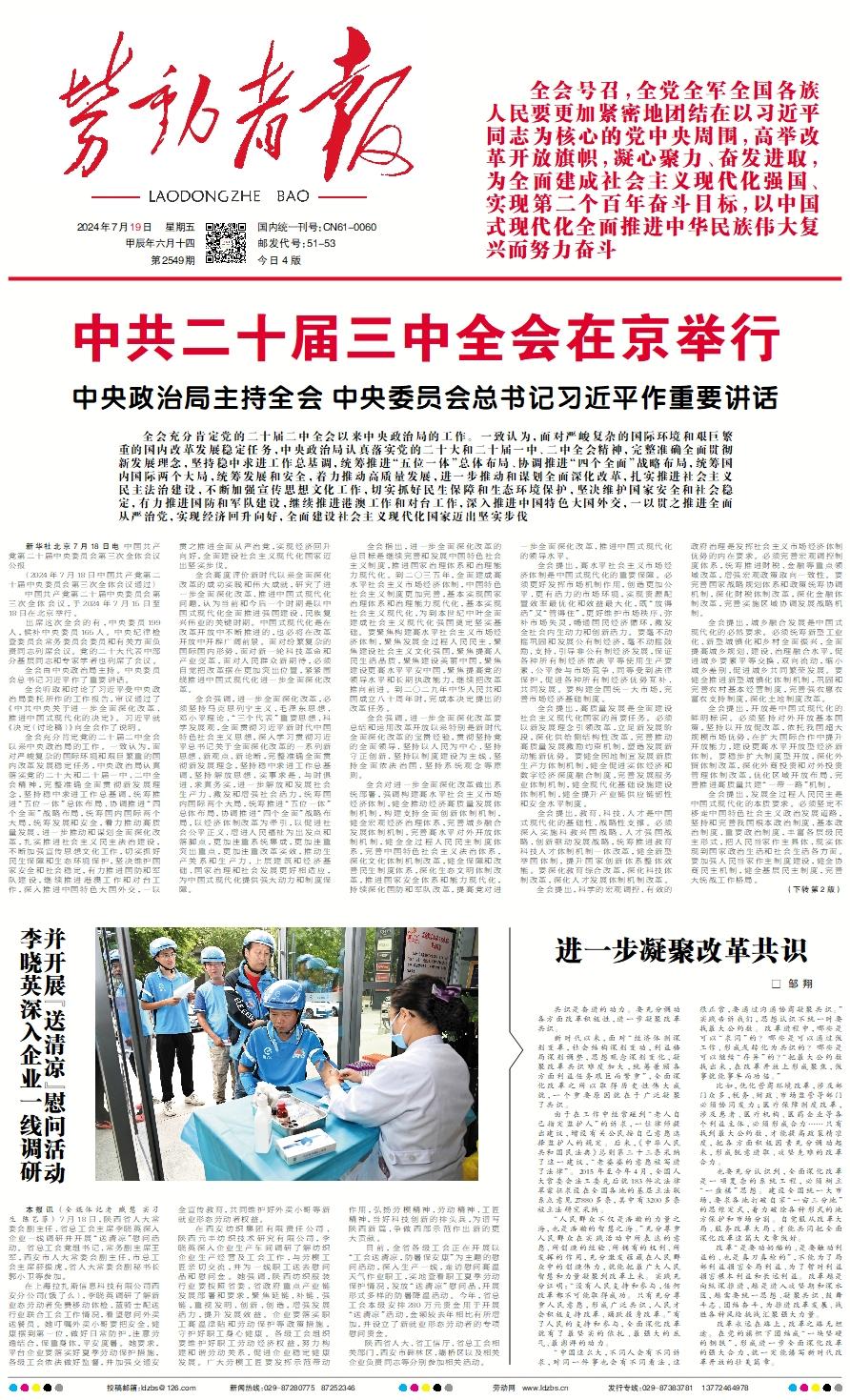 全会充分肯定党的二十届二中全会以来中央政治局的工作。一致认为,面对严峻复杂的国际环境和艰巨繁重的国内改革发展稳定任务,中央政治局认真落实党的二十大和二十届一中、二中全会精神,完整准确全面贯彻新发展理念,坚持稳中求进工作总基调,统筹推进“五位一体”总体布局、协调推进“四个全面”战略布局,统筹国内国际两个大局,统筹发展和安全,着力推动高质量发展,进一步推动和谋划全面深化改革,扎实推进社会主义民主法治建设,不断加强宣传思想文化工作,切实抓好民生保障和生态环境保护,坚决维护国家安全和社会稳定,有力推进国防和军队建设,继续推进港澳工作和对台工作,深入推进中国特色大国外交,一以贯之推进全面从严治党,实现经济回升向好,全面建设社会主义现代化国家迈出坚实步伐 新华社北京7月18日电 中国共产党第二十届中央委员会第三次全体会议公报 (2024年7月18日中国共产党第二十届中央委员会第三次全体会议通过) 中国共产党第二十届中央委员会第三次全体会议,于2024年7月15日至18日在北京举行。 出席这次全会的有,中央委员199人,候补中央委员165人。中央纪律检查委员会常务委员会委员和有关方面负责同志列席会议。党的二十大代表中部分基层同志和专家学者也列席了会议。 全会由中央政治局主持。中央委员会总书记习近平作了重要讲话。 全会听取和讨论了习近平受中央政治局委托所作的工作报告,审议通过了《中共中央关于进一步全面深化改革、推进中国式现代化的决定》。习近平就《决定(讨论稿)》向全会作了说明。 全会充分肯定党的二十届二中全会以来中央政治局的工作。一致认为,面对严峻复杂的国际环境和艰巨繁重的国内改革发展稳定任务,中央政治局认真落实党的二十大和二十届一中、二中全会精神,完整准确全面贯彻新发展理念,坚持稳中求进工作总基调,统筹推进“五位一体”总体布局、协调推进“四个全面”战略布局,统筹国内国际两个大局,统筹发展和安全,着力推动高质量发展,进一步推动和谋划全面深化改革,扎实推进社会主义民主法治建设,不断加强宣传思想文化工作,切实抓好民生保障和生态环境保护,坚决维护国家安全和社会稳定,有力推进国防和军队建设,继续推进港澳工作和对台工作,深入推进中国特色大国外交,一以贯之推进全面从严治党,实现经济回升向好,全面建设社会主义现代化国家迈出坚实步伐。 全会高度评价新时代以来全面深化改革的成功实践和伟大成就,研究了进一步全面深化改革、推进中国式现代化问题,认为当前和今后一个时期是以中国式现代化全面推进强国建设、民族复兴伟业的关键时期。中国式现代化是在改革开放中不断推进的,也必将在改革开放中开辟广阔前景。面对纷繁复杂的国际国内形势,面对新一轮科技革命和产业变革,面对人民群众新期待,必须自觉把改革摆在更加突出位置,紧紧围绕推进中国式现代化进一步全面深化改革。 全会强调,进一步全面深化改革,必须坚持马克思列宁主义、毛泽东思想、邓小平理论、“三个代表”重要思想、科学发展观,全面贯彻习近平新时代中国特色社会主义思想,深入学习贯彻习近平总书记关于全面深化改革的一系列新思想、新观点、新论断,完整准确全面贯彻新发展理念,坚持稳中求进工作总基调,坚持解放思想、实事求是、与时俱进、求真务实,进一步解放和发展社会生产力、激发和增强社会活力,统筹国内国际两个大局,统筹推进“五位一体”总体布局,协调推进“四个全面”战略布局,以经济体制改革为牵引,以促进社会公平正义、增进人民福祉为出发点和落脚点,更加注重系统集成,更加注重突出重点,更加注重改革实效,推动生产关系和生产力、上层建筑和经济基础、国家治理和社会发展更好相适应,为中国式现代化提供强大动力和制度保障。 全会指出,进一步全面深化改革的总目标是继续完善和发展中国特色社会主义制度,推进国家治理体系和治理能力现代化。到二〇三五年,全面建成高水平社会主义市场经济体制,中国特色社会主义制度更加完善,基本实现国家治理体系和治理能力现代化,基本实现社会主义现代化,为到本世纪中叶全面建成社会主义现代化强国奠定坚实基础。要聚焦构建高水平社会主义市场经济体制,聚焦发展全过程人民民主,聚焦建设社会主义文化强国,聚焦提高人民生活品质,聚焦建设美丽中国,聚焦建设更高水平平安中国,聚焦提高党的领导水平和长期执政能力,继续把改革推向前进。到二〇二九年中华人民共和国成立八十周年时,完成本决定提出的改革任务。 全会强调,进一步全面深化改革要总结和运用改革开放以来特别是新时代全面深化改革的宝贵经验,贯彻坚持党的全面领导、坚持以人民为中心、坚持守正创新、坚持以制度建设为主线、坚持全面依法治国、坚持系统观念等原则。 全会对进一步全面深化改革做出系统部署,强调构建高水平社会主义市场经济体制,健全推动经济高质量发展体制机制,构建支持全面创新体制机制,健全宏观经济治理体系,完善城乡融合发展体制机制,完善高水平对外开放体制机制,健全全过程人民民主制度体系,完善中国特色社会主义法治体系,深化文化体制机制改革,健全保障和改善民生制度体系,深化生态文明体制改革,推进国家安全体系和能