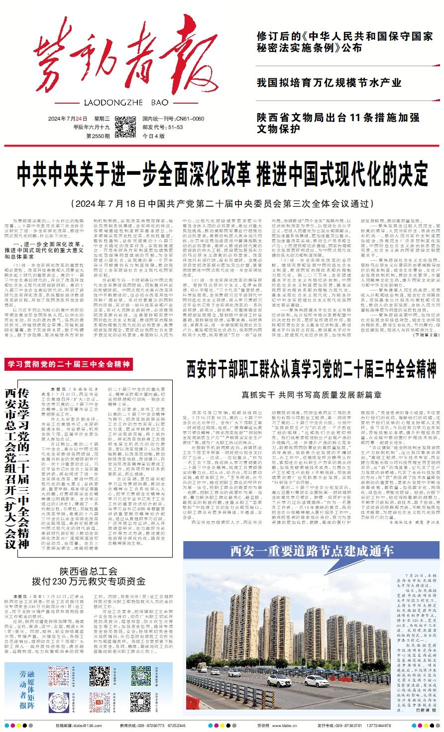 改革号角已吹响,砥砺奋进再出发。7月15日至18日,党的二十届三中全会在北京举行。全市广大干部职工第一时间通过网络、电视、广播等渠道认真学习领会精神。“深化改革创新”“因地制宜发展新质生产力”“严格落实安全生产责任”等,成为广大职工热议的焦点。    在接到手机新闻推送后,新城区总工会干部王冬晖第一时间把公报全文打印了出来,一边读,一边划重点。“作为一名工会干部,我将深入学习贯彻党的二十届三中全会精神,找准工会贯彻落实的着力点、切入点、结合点,用以推动实践,做好本职工作。”王冬晖说,在今后的工作中,她将把职工群众的呼声作为第一信号,把职工群众的需要作为第一选择,把职工群众的满意作为第一追求,着力解决职工群众最关心、最直接、最现实的利益问题,注重从职工“急难愁盼”中找准工会的发力点和突破口,让职工群众有更多获得感、幸福感、安全感。    西安市地方级领军人才、西安市劳动模范刘保亮,同时也是西安三角防务股份有限公司副总工程师,第一时间学习了党的二十届三中全会公报。公报中“发展新质生产力”的表述一下子抓住了他的眼球。“这和我们企业密切相关。我们就是要促进航空产业链产品的升级换代,进一步提升产品的核心竞争力,助推我国国防事业的高质量发展。”刘保亮说,创新是企业发展的不竭动力,在工作中,将继续发挥劳模带头作用,紧扣住企业科研生产方面的难点问题,加强关键领域技术攻关,力图在生产工艺和生产流程上不断创新,用创新成果的推广应用助推企业发展,实现“科研强企”的目标。    党的二十届三中全会公报发表后,海吉亚医疗集团长安医院第一时间组织全体党员学习领会。肿瘤一病区护士张兰在学习过后感慨颇深:“作为一名医务工作者、一名14年党龄的党员,我将把全会公报精神融入医疗服务工作中,始终把患者的需求放在首位,努力为患者提供更加优质、便捷、高效的医疗护理服务。”关注患者的身心健康,不仅要治疗他们的疾病、缓解他们的病痛,还要给予他们足够的心理支持和人文关怀。张兰表示,今后将努力学习业务知识,苦练技能长本领,提升护理服务质量,在实践中推动医疗护理技术创新,和同事一起成长进步。    “会议提到‘健全因地制宜发展新质生产力体制机制’,这让我印象非常深刻。”高级工程师、中车技术专家、西安捷力风能有限公司科技管理主管王晓明表示,从“新”的角度看,它代表了生产力发展的新领域,代表了未来科技发展的方向;而“质”则强调了技术含量和创新驱动的重要性,要求在发展中不断追求高效能、高质量,加强数字化、网络化、绿色化、智能化建设。他说,在接下来的工作中,他将保持敏锐的洞察力,不断学习新知识、新技术,敢于创新,勇于尝试新的思路和方法,不断突破风电技术瓶颈,为建设社会主义现代化强国贡献自己的力量。              全媒体记者 臧慧 李江波