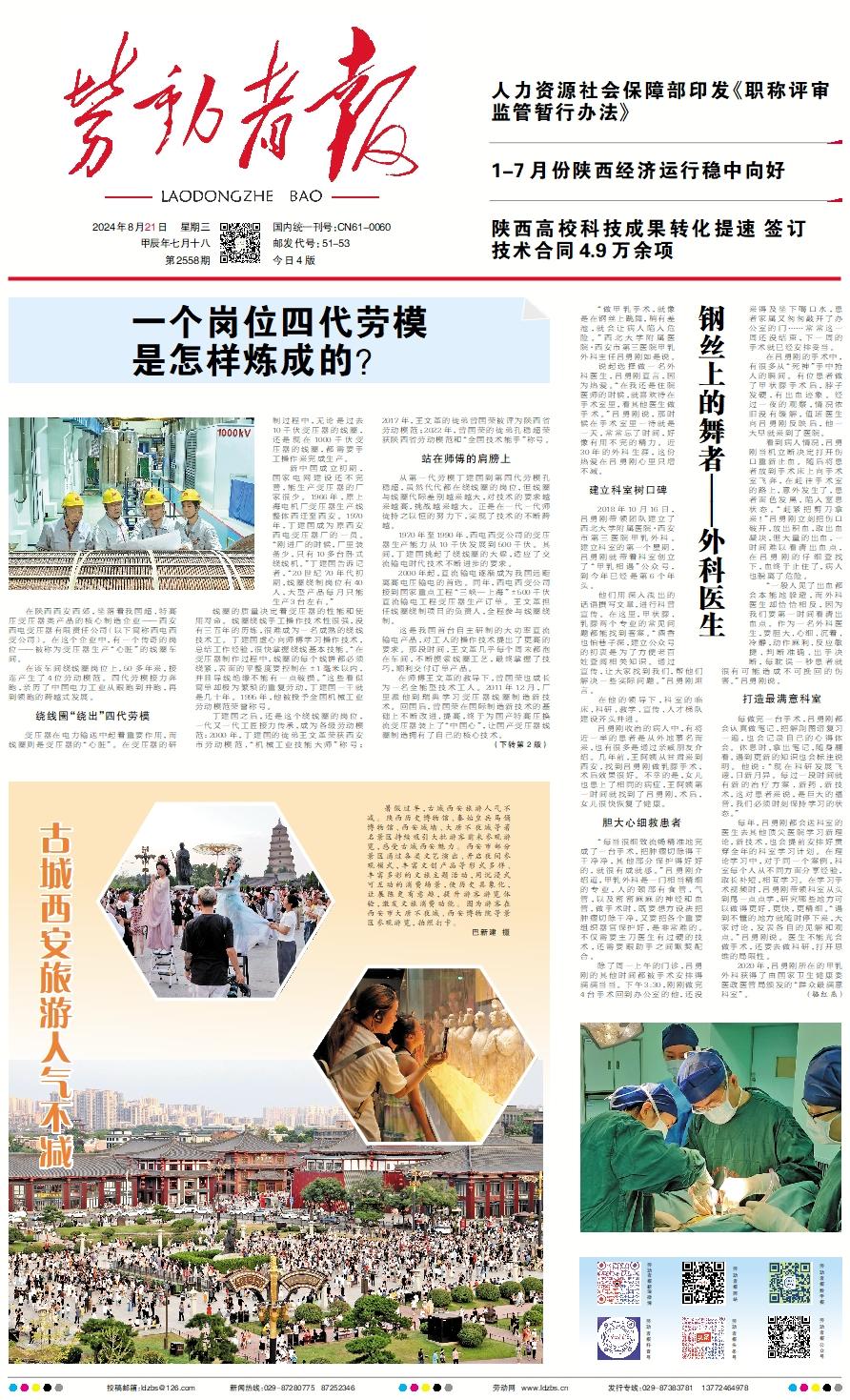 在陕西西安西郊,坐落着我国超、特高压变压器类产品的核心制造企业——西安西电变压器有限责任公司(以下简称西电西变公司)。在这个企业中,有一个传奇的岗位——被称为变压器生产“心脏”的线圈车间。 在该车间绕线圈岗位上,50多年来,接连产生了4位劳动模范。四代劳模接力奔跑,亲历了中国电力工业从跟跑到并跑,再到领跑的跨越式发展。绕线圈“绕出”四代劳模 变压器在电力输送中起着重要作用,而线圈则是变压器的“心脏”。在变压器的研制过程中,无论是过去10千伏变压器的线圈,还是现在1000千伏变压器的线圈,都需要手工操作来完成生产。 新中国成立初期,国家电网建设还不完善,能生产变压器的厂家很少。1966年,原上海电机厂变压器生产线整体西迁至西安。1970年,丁建国成为原西安西电变压器厂的一员。“刚进厂的时候,厂里装备少,只有10多台卧式绕线机。”丁建国告诉记者,“20世纪70年代初期,线圈绕制岗位有40人,大型产品每月只能生产3台左右。” 线圈的质量决定着变压器的性能和使用寿命。线圈绕线手工操作技术性很强,没有三五年的历练,很难成为一名成熟的绕线技术工。丁建国虚心向师傅学习操作技术,总结工作经验,很快掌握绕线基本技能。“在变压器制作过程中,线圈的每个线饼都必须绕紧,表面的平整度要控制在±1毫米以内,并且导线绝缘不能有一点破损。”这些看似简单却极为繁琐的重复劳动,丁建国一干就是几十年。1995年,他被授予全国机械工业劳动模范荣誉称号。 丁建国之后,还是这个绕线圈的岗位,一代又一代工匠接力传承,成为各级劳动模范:2000年,丁建国的徒弟王文革荣获西安市劳动模范、“机械工业技能大师”称号;2017年,王文革的徒弟曾国荣被评为陕西省劳动模范;2022年,曾国荣的徒弟孔稳超荣获陕西省劳动模范和“全国技术能手”称号。站在师傅的肩膀上 从第一代劳模丁建国到第四代劳模孔稳超,虽然代代都在绕线圈的岗位,但线圈与线圈代际差别越来越大,对技术的要求越来越高,挑战越来越大。正是在一代一代师徒持之以恒的努力下,实现了技术的不断跨越。 1970年至1990年,西电西变公司的变压器生产能力从10千伏发展到500千伏。其间,丁建国挑起了绕线圈的大梁,适应了交流输电时代技术不断进步的要求。 2000年起,直流输电逐渐成为我国远距离高电压输电的首选。同年,西电西变公司接到国家重点工程“三峡—上海”±500千伏直流输电工程变压器生产订单。王文革担任线圈绕制项目的负责人,全程参与线圈绕制。 这是我国首台自主研制的大功率直流输电产品,对工人的操作技术提出了更高的要求。那段时间,王文革几乎每个周末都泡在车间,不断摸索线圈工艺,最终掌握了技巧,顺利交付订单产品。 在师傅王文革的教导下,曾国荣也成长为一名全能型技术工人。2011年12月,厂里派他到瑞典学习变压器线圈制造新技术。回国后,曾国荣在国际制造新技术的基础上不断改进、提高,终于为国产特高压换流变压器装上了“中国心”,让国产变压器线圈制造拥有了自己的核心技术。 2019年,西电西变公司中标三峡如东海上风电柔性直流输电1100兆瓦送出项目。该项目产品线圈绕制技术要求高、导线屈服强度大,对技术工人的手工操作提出很高要求。尽管孔稳超与师傅曾国荣在车间里反复尝试,却始终无法达到将线圈线饼幅向精确控制到1毫米的技术要求。孔稳超和师傅对着绕线机思考讨论,怎样才能突破原先的操作技术。曾国荣苦笑着说:“难道还能从外往里绕吗?” 正是这句话启发了孔稳超。他尝试从外到里绕制,终于使线圈线饼幅向控制达到了1毫米的技术要求。传承技术,更传承精神 在丁建国那个时代,生产任务的完成往往需要个人的超常付出,他每个月都超额完成线圈生产任务,甚至曾经一年干过别人两年才能干完的活儿。 1995年春节前,为完成一台价值百万元的电抗器线圈绕制,丁建国带着徒弟王文革工作到大年三十晚上,并不时嘱咐王文革遵守技术规范:“每一个焊接点要比原线略厚0.2毫米,不能让一个焊接点影响变压器质量。” 丁建国用他的技术和品格,为厂里的技术工人树立了标杆。在他的带领下,王文革也为国家重点工程立下汗马功劳。 2000年夏季,西安经历了一场大暴雨。王文革所在车间厂房屋顶出现漏雨。紧急时刻,王文革趴在线圈上,用身体挡住滴漏的雨水,为车间采取堵漏措施争取了时间,避免了雨水中的杂质影响线圈质量。 王文革常常对技术工人说:“在线圈绕制前,要通过图纸了解产品的结构、技术要求,用我们的双手把设计图纸变成一个个产品。”他将工作经验传授给年轻职工,建立并维护车间10年生产周期的生产数据库,使车间各项技术有了传承,他的徒弟曾国荣进一步将绕线圈技术发扬光大。 2020年,西电西变公司为国家阿里与藏中电网联网工程500千伏项目生产变压器。这是迄今为止海拔最高、最具挑战性的输变电工程。 “公司接到40台变压器的生产任务,线圈制造工作非常繁重。”曾国荣说。为了确保产品准时交付,曾国荣与组员坚守生产一线,以厂为家,保障线圈顺利生产。2020年12月,阿里与藏中电网联网工程正式投运。当地群众称,这是打通西藏电网统一“最后一公里”的关键性工程,是一条光明线、团结线、幸福线。 几十年来,曾国荣先后带教徒弟20余名,已成为变压器线圈绕