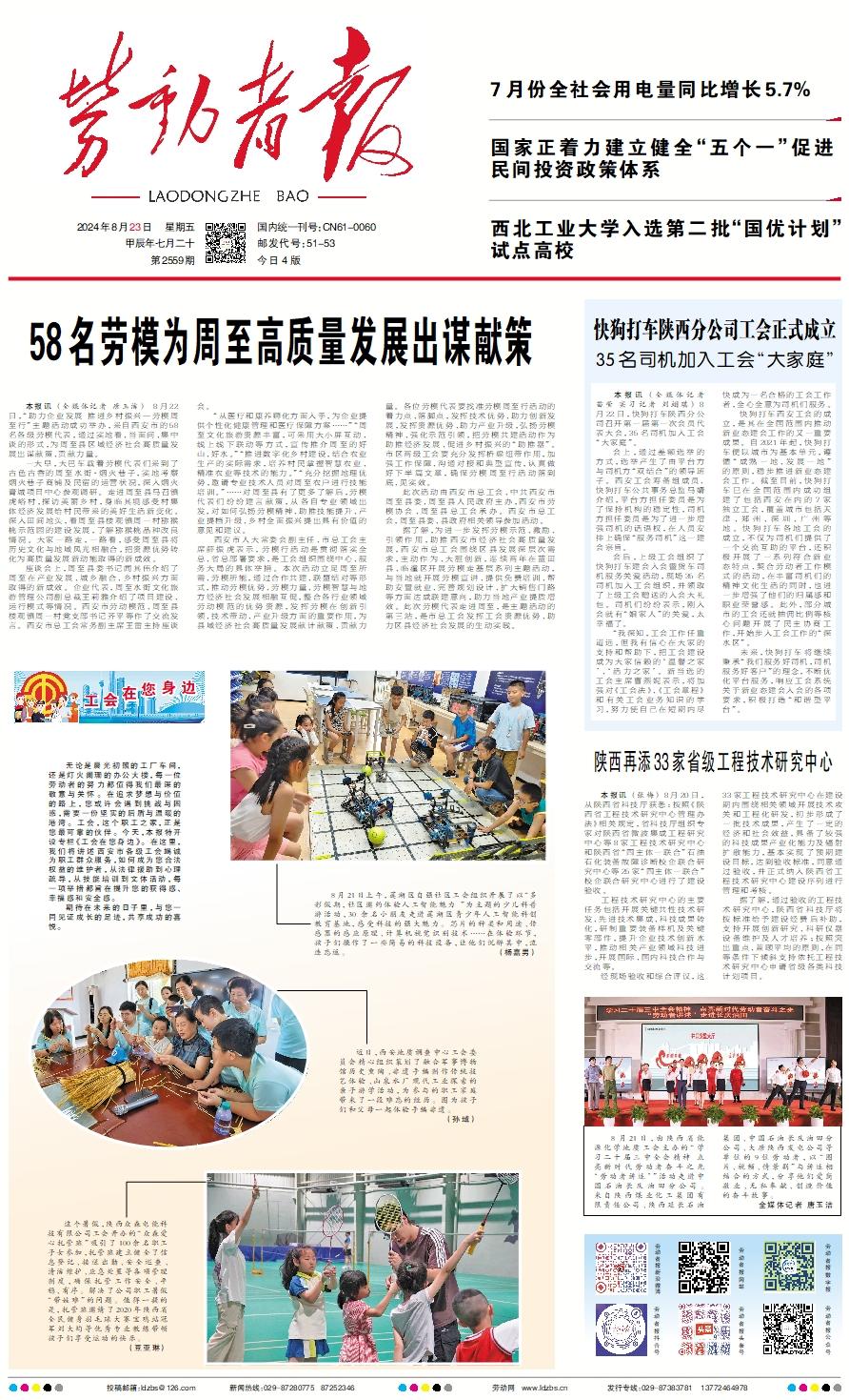 无论是晨光初照的工厂车间,还是灯火阑珊的办公大楼,每一位劳动者的努力都值得我们最深的敬意与关怀。在追求梦想与价值的路上,您或许会遇到挑战与困惑,需要一份坚实的后盾与温暖的港湾。工会,这个职工之家,正是您最可靠的伙伴。今天,本报特开设专栏《工会在您身边》。在这里,我们将讲述西安市各级工会竭诚为职工群众服务,如何成为您合法权益的维护者,从法律援助到心理疏导,从技能培训到文体活动,每一项举措都旨在提升您的获得感、幸福感和安全感。 期待在未来的日子里,与您一同见证成长的足迹,共享成功的喜悦。 8月21日上午,莲湖区自强社区工会组织开展了以“多彩假期,社区邀约体验人工智能魅力 ”为主题的少儿科普游活动,30 余名小朋友走进莲湖区青少年人工智能科创教育基地,感受科技的强大魅力。芯片的种类和用途、传感器的感应原理、计算机视觉识别技术……在体验环节,孩子们操作了一些简易的科技设备,让他们沉醉其中,流连忘返。 (杨嘉男) 近日,西安地质调查中心工会委员会精心组织策划了融合军事博物馆历史熏陶、非遗手编制作传统技艺体验、山泉水厂现代工业探索的亲子游学活动,为参与的职工家庭带来了一段难忘的经历。图为孩子们和父母一起体验手编非遗。 (孙域) 这个暑假,陕西众森电能科技有限公司工会开办的“众森爱心托管班”吸引了100余名职工子女参加,托管班建立健全了信息登记、接送出勤、安全巡查、清洁维护、应急处置等各项管理制度,确保托管工作安全、平稳、有序。解决了公司职工暑假“带娃难”的问题。值得一提的是,托管班邀请了2020年陕西省全民健身羽毛球大赛宝鸡站冠军刘大均等优秀专业教练带领孩子们享受运动的快乐。 (豆亚琳)