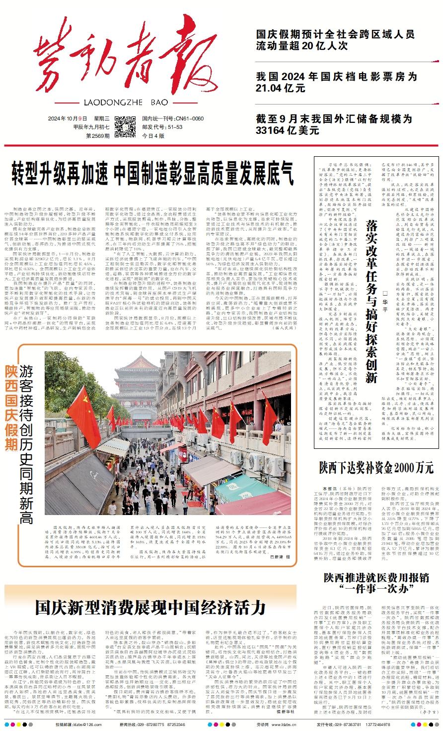 国庆假期,陕西文旅市场人潮涌动,消费活力持续释放,假期7天全省累计接待国内游客4601.46万人次,按可比口径同比增长5.13%;接待国内游客总花费350.08亿元,按可比口径同比增长6.99%,均创历史同期新高。入境游方面:西安机场口岸今年累计出入境人员在国庆假期首日突破100万人次,同比增长144%。全省接待入境团数和人数,同比增长151%和165%,恢复速度高于全国平均水平。 国庆假期,陕西各大景区持续高位运行,用一系列精彩纷呈的活动,拉动消费的主力军使命——全省重点监测的51个重点旅游景区共接待游客764.29万人次,旅游经营收入44993.65万元,同比2023年分别增长29.18%和22.88%。图为10月6日游客在西安市北院门文化街区参观游览。 巴新建 摄