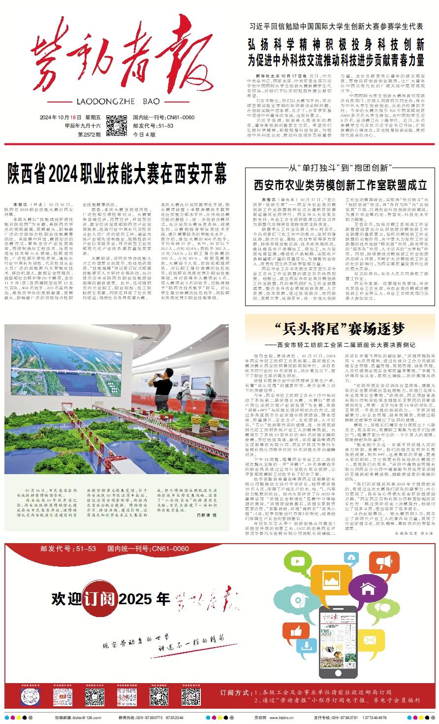 本报讯 (鲜康) 10月16日,陕西省2024职业技能大赛在西安开幕。 本届大赛以“技能成就梦想技能兴陕报国”为主题,是陕西省举办的规格最高、规模最大、影响最广泛的省级综合性职业技能赛事活动。采取集中开放、赛展结合的办赛方式,聚焦全省产业发展需求,围绕制造与工程技术、信息与通信技术等六大领域,按照通用性、广泛性和引领性原则,遴选在行业中具有先进性、代表性且从业人员广泛的新能源汽车智能化技术、移动机器人、数据安全管理员、健康和社会照护等20个赛项,全省11个市(区)及西藏阿里地区12支代表队、404名选手、223名裁判参加,是我省举办的规格最高、规模最大、影响最广泛的省级综合性职业技能赛事活动。 据悉,本次大赛呈现通用性、广泛性和引领性等特点。大赛聚焦县域经济、民营经济、开放型经济、数字经济发展和陕西省产业发展需求,选取行业中具有代表性且从业人员广泛的通用工种,涵盖传统产业和先进制造业、战略性新兴产业以及服务业,符合新型工业化和现代化产业体系高质量发展要求。 大赛期间,将同步举办技能人才工作成果交流展示、绝技绝活展演、“技能援藏”协议签订仪式和高技能领军人才研讨会等活动,充分展示近年来陕西省职业技能建设取得的最新成果。此外,还将组织省内企业职工,职业院校、技工院校师生观摩,同时还开通了社会预约通道,吸纳社会各界观摩大赛。本次大赛充分运用数智化手段,除在赛项设置上考察参赛选手数智化应用能力和水平外,在传统办赛经验的基础上,进一步创新办赛形式,充分运用大赛信息系统、视频监控、分赛场投屏等信息技术手段,提升赛事服务的智能化水平。据介绍,参加大赛的404名选手,平均年龄27岁。其中,30岁以下252人,占比62.4%;男选手302人,占比74.8%;以职工身份参赛的198人,占比49%。根据竞赛规则,大赛设个人奖、团体奖和组织奖。对以职工身份参赛的优胜选手,将按照有关规定晋升职业技能等级,并对获得单人赛项前5名、双人赛项前3名的选手,经核准授予“陕西省技术能手”称号。对以学生身份参赛的优胜选手,则按照有关规定晋升职业技能等级。