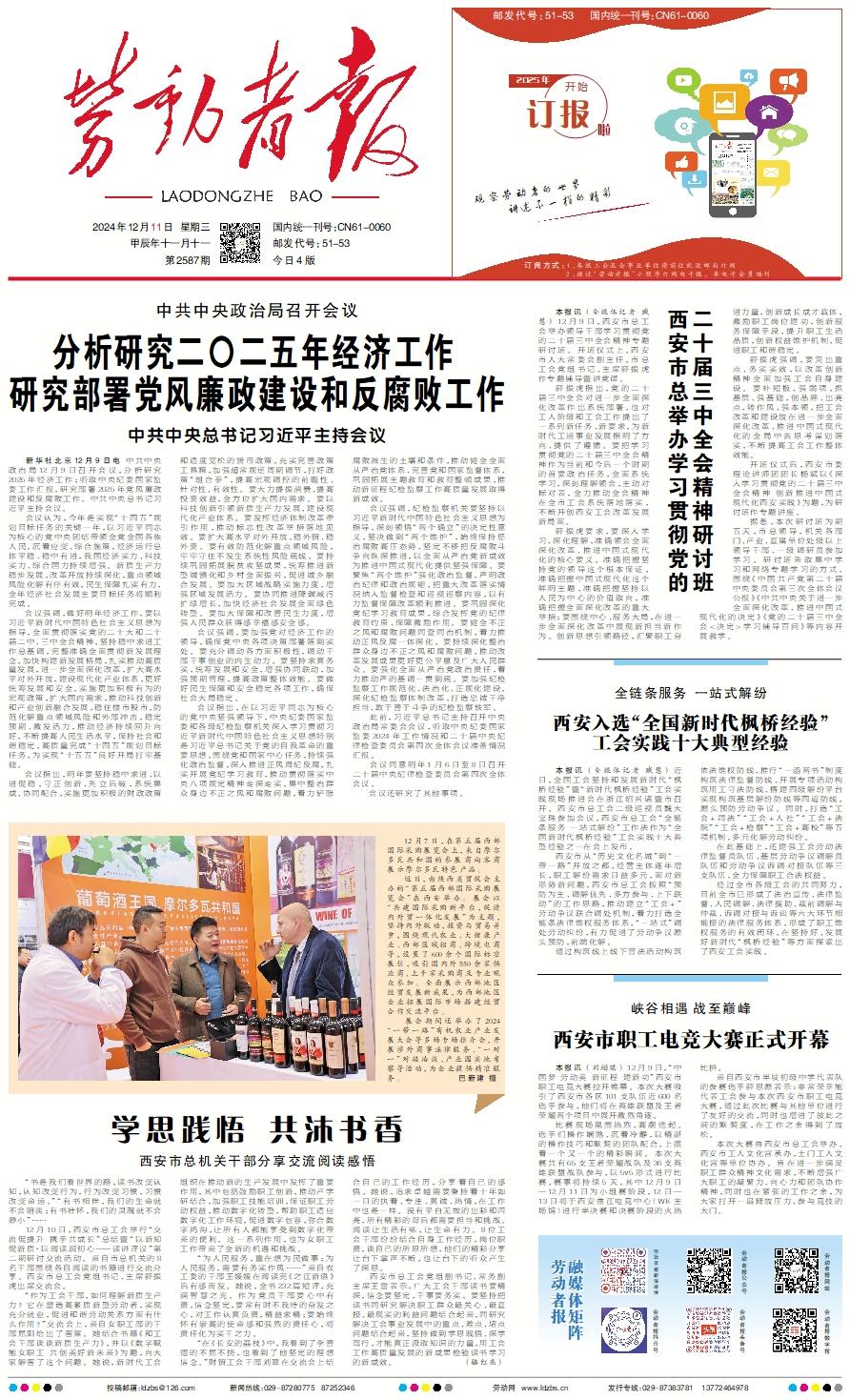 新华社北京12月9日电 中共中央政治局12月9日召开会议,分析研究2025年经济工作;听取中央纪委国家监委工作汇报,研究部署2025年党风廉政建设和反腐败工作。中共中央总书记习近平主持会议。    会议认为,今年是实现“十四五”规划目标任务的关键一年,以习近平同志为核心的党中央团结带领全党全国各族人民,沉着应变、综合施策,经济运行总体平稳、稳中有进,我国经济实力、科技实力、综合国力持续增强。新质生产力稳步发展,改革开放持续深化,重点领域风险化解有序有效,民生保障扎实有力,全年经济社会发展主要目标任务将顺利完成。    会议强调,做好明年经济工作,要以习近平新时代中国特色社会主义思想为指导,全面贯彻落实党的二十大和二十届二中、三中全会精神,坚持稳中求进工作总基调,完整准确全面贯彻新发展理念,加快构建新发展格局,扎实推动高质量发展,进一步全面深化改革,扩大高水平对外开放,建设现代化产业体系,更好统筹发展和安全,实施更加积极有为的宏观政策,扩大国内需求,推动科技创新和产业创新融合发展,稳住楼市股市,防范化解重点领域风险和外部冲击,稳定预期、激发活力,推动经济持续回升向好,不断提高人民生活水平,保持社会和谐稳定,高质量完成“十四五”规划目标任务,为实现“十五五”良好开局打牢基础。    会议指出,明年要坚持稳中求进、以进促稳,守正创新、先立后破,系统集成、协同配合,实施更加积极的财政政策和适度宽松的货币政策,充实完善政策工具箱,加强超常规逆周期调节,打好政策“组合拳”,提高宏观调控的前瞻性、针对性、有效性。要大力提振消费、提高投资效益,全方位扩大国内需求。要以科技创新引领新质生产力发展,建设现代化产业体系。要发挥经济体制改革牵引作用,推动标志性改革举措落地见效。要扩大高水平对外开放,稳外贸、稳外资。要有效防范化解重点领域风险,牢牢守住不发生系统性风险底线。要持续巩固拓展脱贫攻坚成果,统筹推进新型城镇化和乡村全面振兴,促进城乡融合发展。要加大区域战略实施力度,增强区域发展活力。要协同推进降碳减污扩绿增长,加快经济社会发展全面绿色转型。要加大保障和改善民生力度,增强人民群众获得感幸福感安全感。    会议强调,要加强党对经济工作的领导,确保党中央各项决策部署落到实处。要充分调动各方面积极性,调动干部干事创业的内生动力。要坚持求真务实,统筹发展和安全,增强协同联动,加强预期管理,提高政策整体效能。要做好民生保障和安全稳定各项工作,确保社会大局稳定。    会议指出,在以习近平同志为核心的党中央坚强领导下,中央纪委国家监委和各级纪检监察机关深入学习贯彻习近平新时代中国特色社会主义思想特别是习近平总书记关于党的自我革命的重要思想,围绕党和国家中心任务,持续强化政治监督,深入推进正风肃纪反腐,扎实开展党纪学习教育,推动贯彻落实中央八项规定精神走深走实,集中整治群众身边不正之风和腐败问题,着力铲除腐败滋生的土壤和条件,推动健全全面从严治党体系、完善党和国家监督体系,巩固拓展主题教育和教育整顿成果,推动新征程纪检监察工作高质量发展取得新成效。    会议强调,纪检监察机关要坚持以习近平新时代中国特色社会主义思想为指导,深刻领悟“两个确立”的决定性意义,坚决做到“两个维护”,始终保持惩治腐败高压态势,坚定不移把反腐败斗争向纵深推进,以全面从严治党新成效为推进中国式现代化提供坚强保障。要聚焦“两个维护”强化政治监督,严明政治纪律和政治规矩,把重大改革落实情况纳入监督检查和巡视巡察内容,以有力监督保障改革顺利推进。要巩固深化党纪学习教育成果,综合发挥党的纪律教育约束、保障激励作用。要健全不正之风和腐败问题同查同治机制,着力推动正风反腐一体深化。要持续深化整治群众身边不正之风和腐败问题,推动改革发展成果更好更公平惠及广大人民群众。要强化全面从严治党政治责任,着力推动严的基调一贯到底。要加强纪检监察工作规范化、法治化、正规化建设,深化纪检监察体制改革,打造忠诚干净担当、敢于善于斗争的纪检监察铁军。    此前,习近平总书记主持召开中央政治局常委会会议,听取中央纪委国家监委2024年工作情况和二十届中央纪律检查委员会第四次全体会议准备情况汇报。    会议同意明年1月6日至8日召开二十届中央纪律检查委员会第四次全体会议。    会议还研究了其他事项。