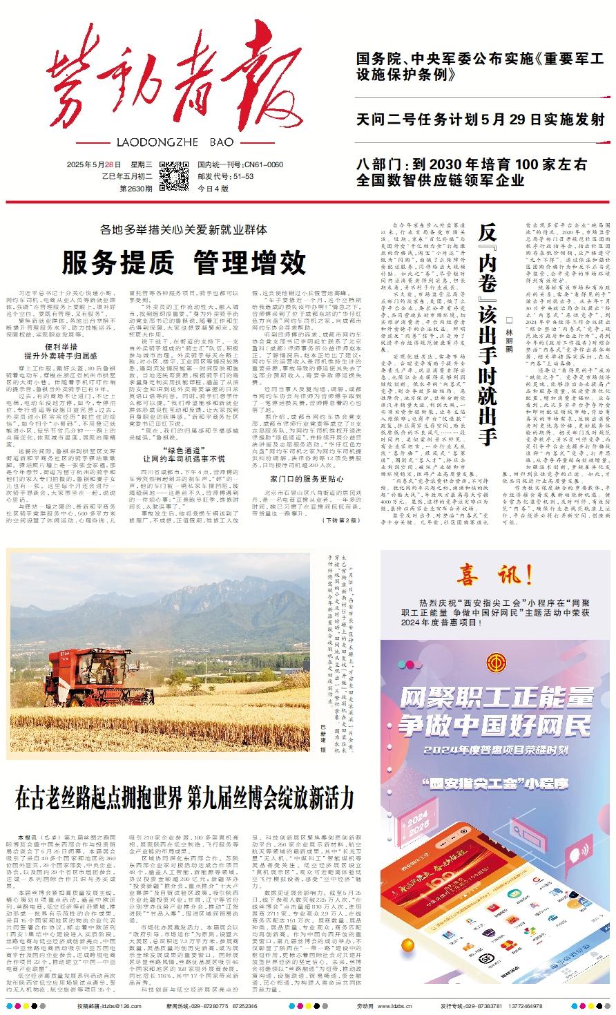 本报讯 (巴岩) 第九届丝绸之路国际博览会暨中国东西部合作与投资贸易洽谈会于5月25日闭幕。本届展会吸引了来自40多个国家和地区的260位国外嘉宾、29个国家部委、中央企业、协会,以及国内29个省区市组团参会,达成一系列国际合作共识与务实成果。 本届丝博会紧扣高质量发展主线,精心策划8项重点活动,涵盖中欧班列、丝路电商、低空经济等前沿领域,推动形成一批具有示范性的合作成果。来自15个国家和地区的物流企业代表共同签署合作协议,标志着中欧班列(西安)集结中心建设进入实质阶段。丝路电商与低空经济成创新亮点,中国—中亚丝路电商活动吸引中亚五国电商平台及国内企业参会,达成跨境电商合作项目23个,推动建立“中国—中亚电商产业联盟”。 低空经济高质量发展系列活动首次发布陕西省低空应用场景试点清单,签约无人机物流、航空旅游等项目35个,吸引210家企业参展,100多架真机亮相,展现陕西在低空制造、飞行服务等全产业链的布局成果。 区域协同深化东西部合作。苏陕东西部企业家对接活动达成合作项目48个,涵盖人工智能、新能源等领域,协议投资金额超200亿元;新疆举办“投资新疆”推介会,重点推介“十大产业集群”及自贸试验区政策,吸引陕西企业赴疆投资兴业;甘肃、辽宁等省份分别举办优势产业推介会,推动“辽货进陕”“甘品入秦”,促进区域间贸易流通。 市场化办展激发活力。本届展会以“政府引导、市场运作”为原则,设置六大展区,总面积达7.2万平方米,参展商数量、展品质量均创历史新高,成为展示全球发展成果的重要窗口。国际展区尽显丝路风情,丝路优品展区吸引46个国家和地区的158家境外展商参展,同比增长116%,其中17个国家带来新品首秀。 科技创新与低空经济展区亮点纷呈。科技创新展区聚焦秦创原创新驱动平台,256家企业展示新材料、航空航天等领域的最新成果,其中“长光卫星”无人机、“中煤科工”智能煤机等展品备受关注。低空经济展区设立“真机展示区”,观众可近距离体验低空飞行模拟设备,感受“空中经济”魅力。 数据见证展会影响力。截至5月25日,线下参观人数突破22.5万人次,“在线丝博会”点击量超810万人次,注册展商2711家,专业观众2.9万人,在线商务匹配达151万次。展商数量、展品种类、展品质量、专业观众、商务匹配均再创新高。作为中国向西开放的重要窗口,第九届丝博会的成功举办,不仅彰显了陕西在“一带一路”建设中的枢纽作用,更标志着国际社会对共建开放型世界经济的坚定信心。未来,丝博会将继续以“丝路融通”为纽带,推动政策沟通、设施联通、贸易畅通、资金融通、民心相通,为构建人类命运共同体贡献力量。