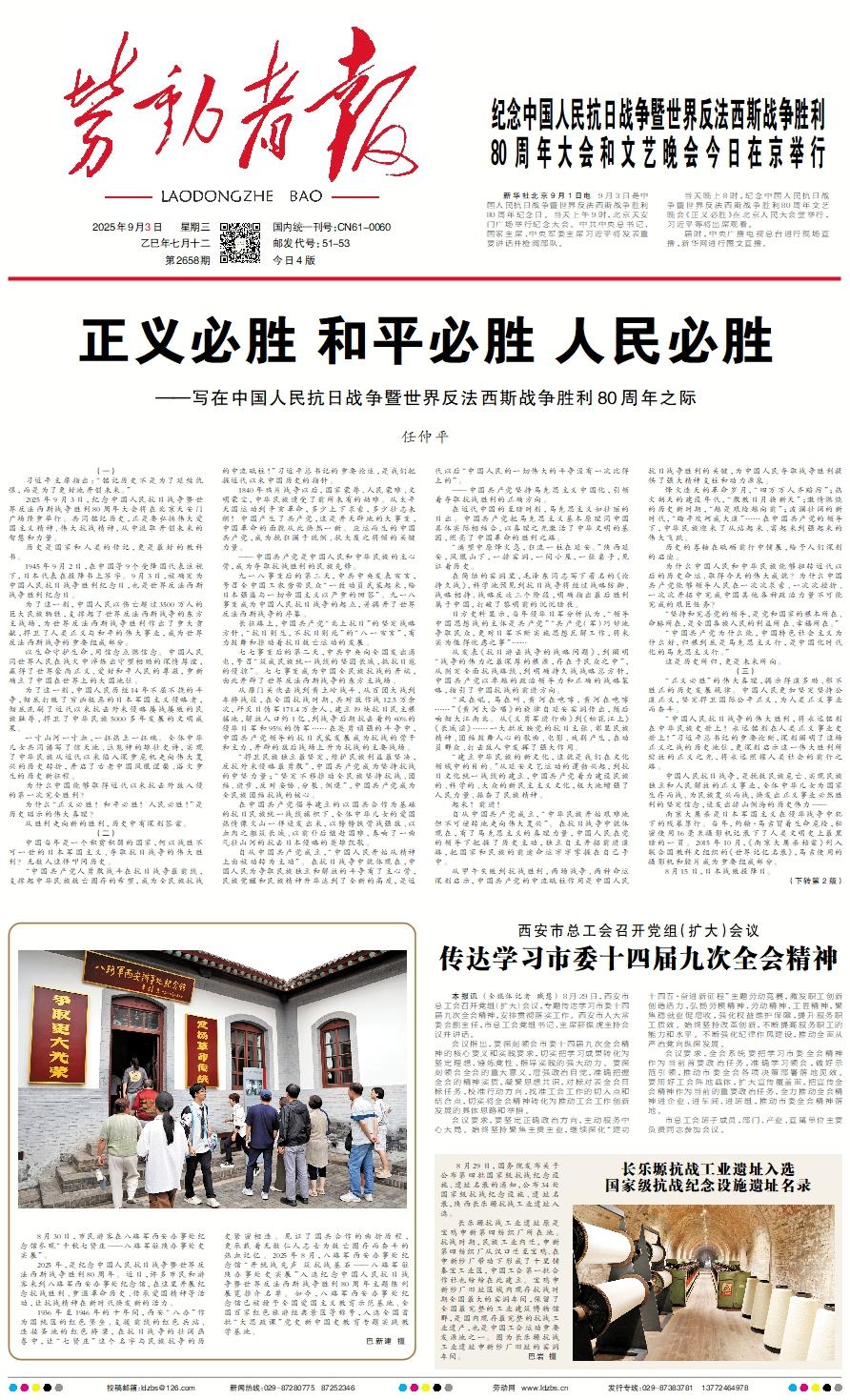 任仲平(一) 习近平主席指出:“铭记历史不是为了延续仇恨,而是为了更好地开创未来。” 2025年9月3日,纪念中国人民抗日战争暨世界反法西斯战争胜利80周年大会将在北京天安门广场隆重举行。共同铭记历史,正是要弘扬伟大爱国主义精神、伟大抗战精神,从中汲取开创未来的智慧和力量。 历史是国家和人类的传记,更是最好的教科书。 1945年9月2日,在中国等9个受降国代表注视下,日本代表在投降书上签字。9月3日,被确定为中国人民抗日战争胜利纪念日,也是世界反法西斯战争胜利纪念日。 为了这一刻,中国人民以伤亡超过3500万人的巨大民族牺牲,支撑起了世界反法西斯战争的东方主战场,为世界反法西斯战争胜利作出了重大贡献,捍卫了人类正义与和平的伟大事业,成为世界反法西斯战争的重要组成部分。 以生命守护生命,用信念点燃信念。中国人民同世界人民在战火中淬炼出守望相助的深情厚谊,赢得了世界崇尚正义、爱好和平人民的尊敬,重新确立了中国在世界上的大国地位。 为了这一刻,中国人民历经14年不屈不挠的斗争,彻底打败了穷凶极恶的日本军国主义侵略者,彻底洗刷了近代以来抗击外来侵略屡战屡败的民族耻辱,捍卫了中华民族5000多年发展的文明成果。 一寸山河一寸血,一抔热土一抔魂。全体中华儿女共同谱写了惊天地、泣鬼神的雄壮史诗,实现了中华民族从近代以来陷入深重危机走向伟大复兴的历史转折,开启了古老中国凤凰涅槃、浴火重生的历史新征程。 为什么中国能够取得近代以来抗击外敌入侵的第一次完全胜利? 为什么“正义必胜!和平必胜!人民必胜!”是历史昭示的伟大真理? 从胜利走向新的胜利,历史中有深刻答案。(二) 中国当年是一个积贫积弱的国家,何以战胜不可一世的日本军国主义、夺取抗日战争的伟大胜利?无数人这样叩问历史。 “中国共产党人勇敢战斗在抗日战争最前线,支撑起中华民族救亡图存的希望,成为全民族抗战的中流砥柱!”习近平总书记的重要论述,是我们把握近代以来中国历史的指针。 1840年鸦片战争以后,国家蒙辱、人民蒙难、文明蒙尘,中华民族遭受了前所未有的劫难。从太平天国运动到辛亥革命,多少上下求索,多少壮志未酬!中国产生了共产党,这是开天辟地的大事变,中国革命的面貌从此焕然一新。应运而生的中国共产党,成为挽狂澜于既倒、扶大厦之将倾的关键力量。 ——中国共产党是中国人民和中华民族的主心骨,成为夺取抗战胜利的民族先锋。 九一八事变后的第三天,中共中央发表宣言,号召全中国工农劳苦民众“一致动员武装起来,给日本强盗与一切帝国主义以严重的回答”。九一八事变成为中国人民抗日战争的起点,并揭开了世界反法西斯战争的序幕。 长征路上,中国共产党“北上抗日”的坚定战略方针,“抗日则生,不抗日则死”的“八一宣言”,有力鼓舞和推动着抗日救亡运动的发展。 七七事变后的第二天,中共中央向全国发出通电,号召“筑成民族统一战线的坚固长城,抵抗日寇的侵掠”。七七事变成为中国全民族抗战的开端,由此开辟了世界反法西斯战争的东方主战场。 从雁门关伏击战到黄土岭战斗,从百团大战到车桥战役,在全国抗战时期,共对敌作战12.5万余次,歼灭日伪军171.4万余人,建立19块抗日民主根据地,解放人口约1亿,到战争后期抗击着约60%的侵华日军和95%的伪军……在英勇顽强的斗争中,中国共产党领导的抗日武装发展成为抗战的骨干和主力,开辟的敌后战场上升为抗战的主要战场。 “捍卫民族独立最坚定,维护民族利益最坚决,反抗外来侵略最勇敢”,中国共产党成为坚持抗战的中坚力量;“坚定不移推动全民族坚持抗战、团结、进步,反对妥协、分裂、倒退”,中国共产党成为全民族团结抗战的核心。 在中国共产党倡导建立的以国共合作为基础的抗日民族统一战线旗帜下,全体中华儿女的爱国热情像火山一样迸发出来,以铮铮铁骨战强敌、以血肉之躯筑长城、以前仆后继赴国难,奏响了一曲气壮山河的抗击日本侵略的英雄凯歌。 自从中国共产党成立,“中国人民开始从精神上由被动转为主动”。在抗日战争中就体现在,中国人民为争取民族独立和解放的斗争有了主心骨,民族觉醒和民族精神升华达到了全新的高度,是近代以后“中国人民的一切伟大的斗争没有一次比得上的”。 ——中国共产党坚持马克思主义中国化,引领着夺取抗战胜利的正确方向。 在近代中国的至暗时刻,马克思主义如壮丽的日出。中国共产党把马克思主义基本原理同中国具体实际相结合,以真理之光激活了中华文明的基因,照亮了中国革命的胜利之路。 “遥望中原烽火急,狂流一柱在延安。”陕西延安,凤凰山下,一排窑洞,一间小屋,一张桌子,见证着历史。 在简陋的窑洞里,毛泽东同志写下著名的《论持久战》,科学地预见到抗日战争将经过战略防御、战略相持、战略反攻三个阶段,明确指出最后胜利属于中国,打破了黎明前的沉沉暗夜。 日方史料显示,当年侵华日军分析认为,“领导中国思想战的主体是共产党”“共产党(军)巧妙地争取民众,更对日军不断实施思想瓦解工作,将来实为值得忧虑之事”…… 从发表《抗日游击战争的战略问题》,到阐明“战争的伟力之最深厚的根源,存在于民众之中”,从制定全面抗战路线,到明确持久战战略总方针,中国共产党以卓越的政治领导力和正确的