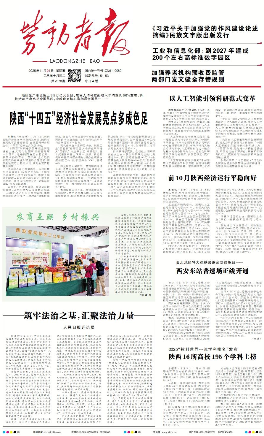 本报讯 (杨晓梅) 11月19日,陕西省政府新闻办举行新闻发布会,陕西省发展改革委党组书记、主任王青峰介绍全省“十四五”经济社会发展成就。 “十四五”时期是我国开启全面建设社会主义现代化国家新征程的第一个五年,也是陕西发展攻坚克难、积厚成势的五年。五年来,全省经济实现质的有效提升和量的合理增长,高质量发展迈出坚实步伐,规划主要目标基本实现。 经济综合实力显著提升。全省地区生产总值迈上3.5万亿元台阶;人均生产总值预计超过1.3万美元;居民人均可支配收入年均增长6.6%左右,高于经济增速。经济运行稳中有进、动能向新转换、结构向优调整。 新质生产力动力强劲。全省创新体系重塑,研发经费投入强度居西部第一,科技活动产出水平全国第四,秦创原创新驱动平台、“三项改革”效能持续释放,全省入库科技型中小企业数量、高新技术企业数量、技术合同成交额年均分别增长30%左右。 现代化产业体系初见成效。能源工业“压舱石”作用凸显,5个产业集群进入“国家队”,钛金属加工、单晶硅片、重卡变速器产量全球第一,光伏、新能源汽车产量保持国内领先,服务业规模占据半壁江山,数字经济占GDP比重超40%。 开放能级大幅跃升。营商环境持续优化,经营主体数量增加150多万户,民营经济增加值占GDP比重提升至50%;中欧班列开行量超全国总量的1/4,核心指标居全国第一,38项自贸试验区改革试点经验在全国推广;全省对共建“一带一路”国家进出口额年均增长11.7%。 协调发展迈出大步。全省高铁网络持续织密;关中平原城市群、西安都市圈加快建设,陕北能源转化步伐持续加快、陕南“两山”转化通道持续拓展;县域经济蝶变跃升,生产总值过200亿元的县数量有望翻一番;国家优势特色农业产业集群增至11个,农村居民人均可支配收入年均增长8.1%。 群众获得感更强。全省社会保障和就业支出占一般公共预算支出的比例超过20%,累计新增就业超210万人;教育事业投入累计突破5000亿元,省级标准化高中实现县区全覆盖;83个县(市、区)医院全部达到国家二级医院基本标准,建成养老床位23.2万张、托位18.2万个。 美丽陕西展现新气象。秦岭陕西段环境优良等级面积提高至99.4%,刷新历史纪录;黄河干流陕西段水质连续三年保持Ⅱ类、水土流失面积和强度“双下降”,汉丹江出境水质稳定在Ⅱ类以上;空气质量持续改善,陕西连续两年在全国污染防治攻坚战成效考核中获优秀等级。