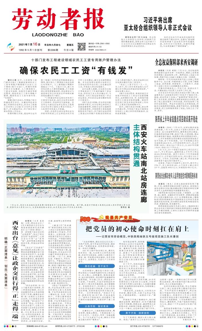 7月14日,西安火车站南北站房连廊(高架候车厅)主体结构正式贯通。据了解,承建方中铁建工集团先后投入项目管理人员70余名、劳务作业人员近1000人、大型机械设备40余台,66天完成12000平方米主体结构。 雷伟东 摄