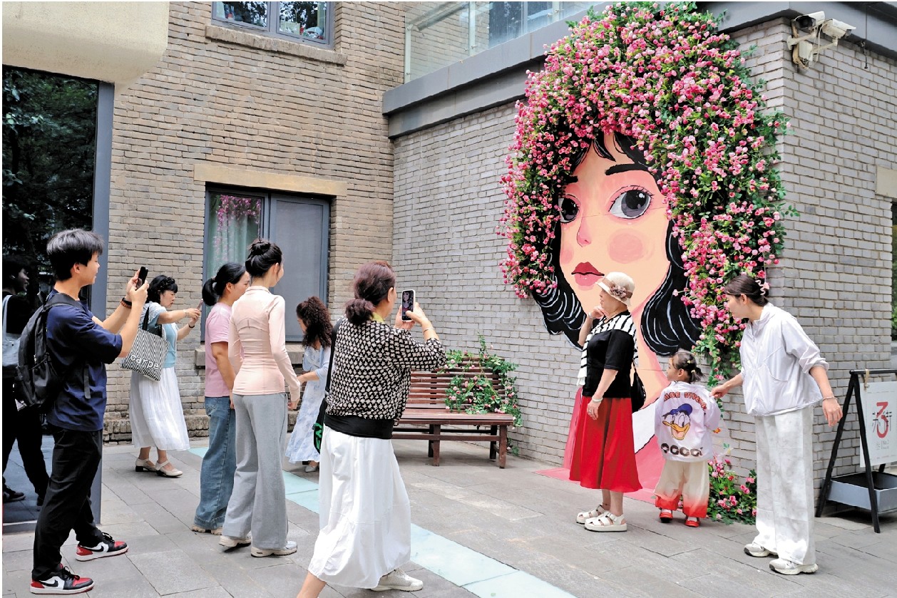 近日,西安纺织城苏街的转角处,一面新落成的花墙引人注目,吸引了众多市民游客前来打卡拍照。这面融合了立体雕塑与园艺艺术的花墙,以其独特的创意诠释着城市公共艺术内涵,也让苏街再次映入人们的视线中。