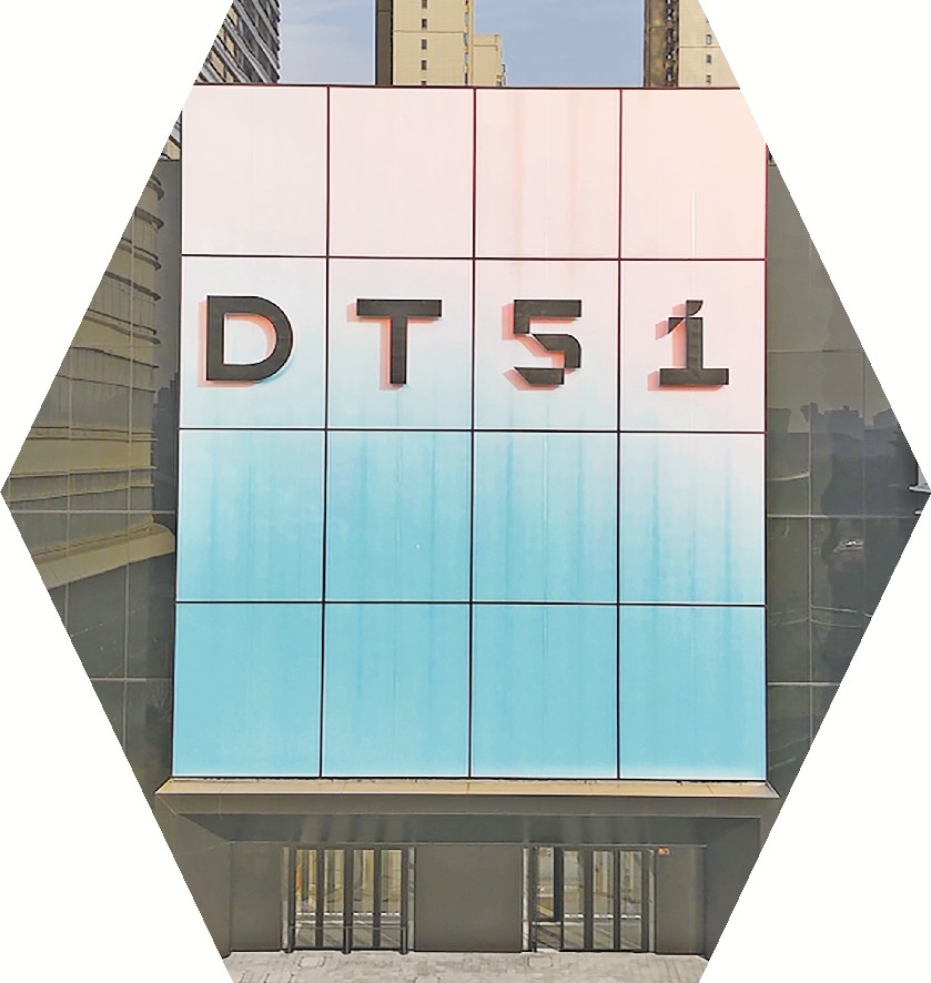 还未踏入DT51,就被其建筑外立面的流畅线条吸引。不同于传统商场四四方方的格局,这座商业体仿佛一件大地艺术品,而商场外的玻璃幕墙在曲线与光影的交织下展现着独特的韵律。