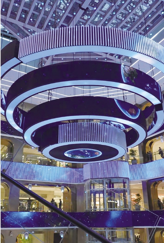 记者走进商圈内部,空间设计令人眼前一亮。最引人注目的是贯穿各楼层的中庭装置——以“银河系”为主题的艺术空间,运用灯光与升降装置技术,营造出身临其境的宇宙探索氛围。商场内部以开放通透的空间设计串联起各个功能区,引入西安本地设计师品牌、独立咖啡馆与艺术快闪空间,强化青年文化属性。一层以轻奢零售与自营买手店为主,汇集超过70个品牌,而B1层则聚焦本地生活方式,呈现非遗手作与在地饮食文化。DT51不仅承载高端零售功能,更试图成为区域文化发生器,以高频次的艺术展览与社群活动持续激活公共空间,吸引年轻客群驻留与互动。