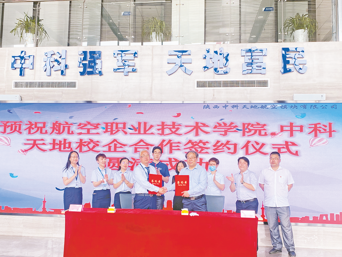 5月21日,陕西中科天地航空模块有限公司与西安航空职业技术学院签订合作协议,西安航空职业技术学院将陕西中科天地航空模块有限公司确定为教师企业实践基地和学生就业 与 实 习 基地。