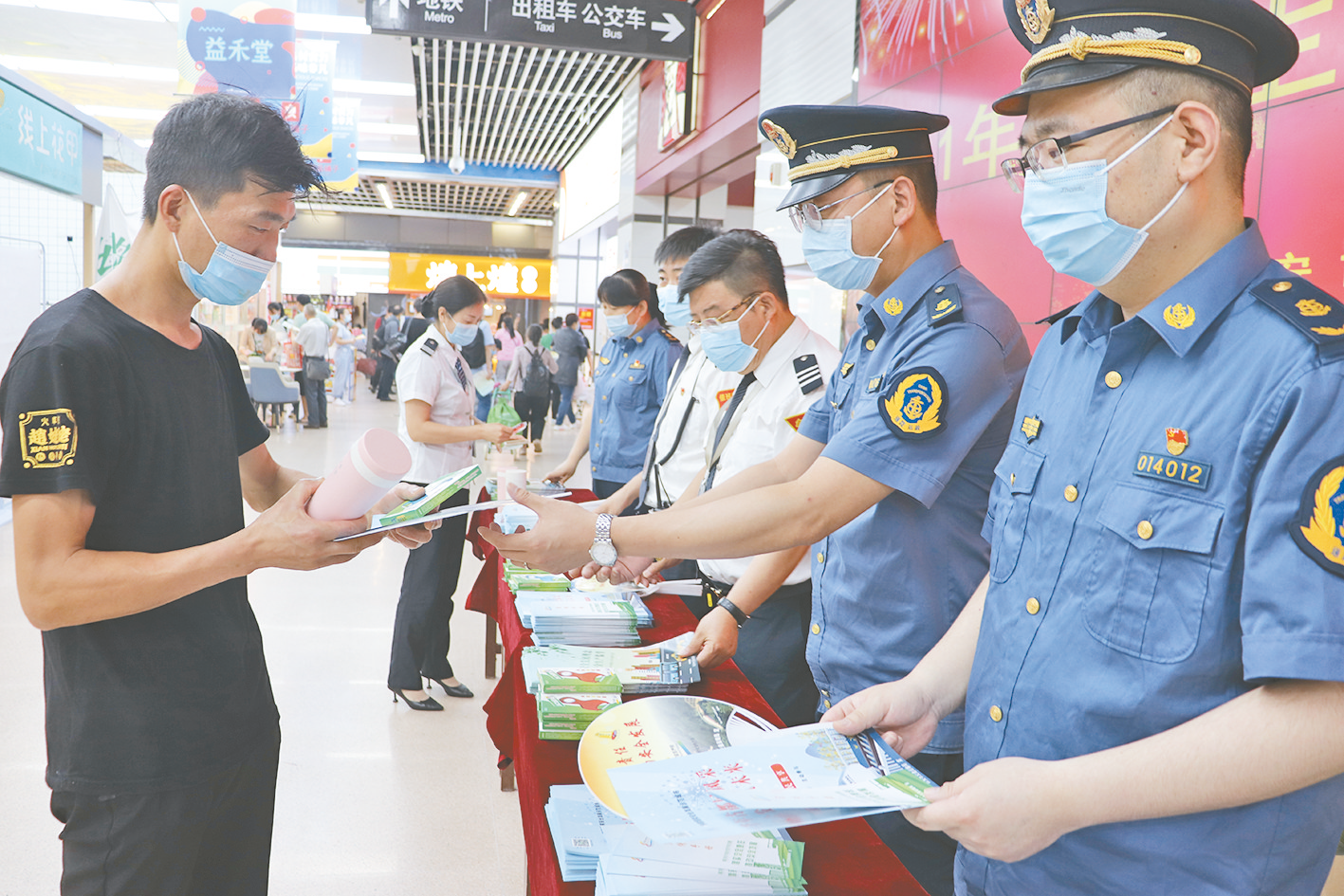 近日,西安市交通运输管理处、西安市公安灞桥分局、西安市灞桥区交通运输局、西安纺织城客运站等联合开展以“落实安全责任,推动安全发展”为主题的安全生产月宣传咨询日活动。活动现场,通过发放安全生产月宣传手册和应知应会宣传彩页、现场答疑解惑以及发放小礼品等方式,紧紧围绕主题,集中宣传了安全生产知识、政策措施以及交通运输安全、消防安全、用电安全等多方面内容,并提醒过往旅客及市民进正规站,选择绿色交通出行。