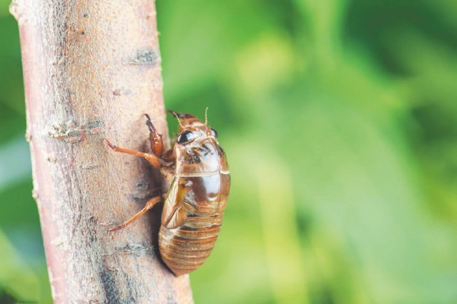 小时最爱看蝉脱壳,背部先裂开一细缝,它缓缓从壳里蠕出,嫩黄,温润,翅膀似豆粒,渐渐整个身子颜色变深,形成半透明彩翼,好似障扇,若肚皮有两片半圆鳞片,似京剧武将的盔甲,便是雄知了,会叫、无鳞片是雌知了,是哑巴。