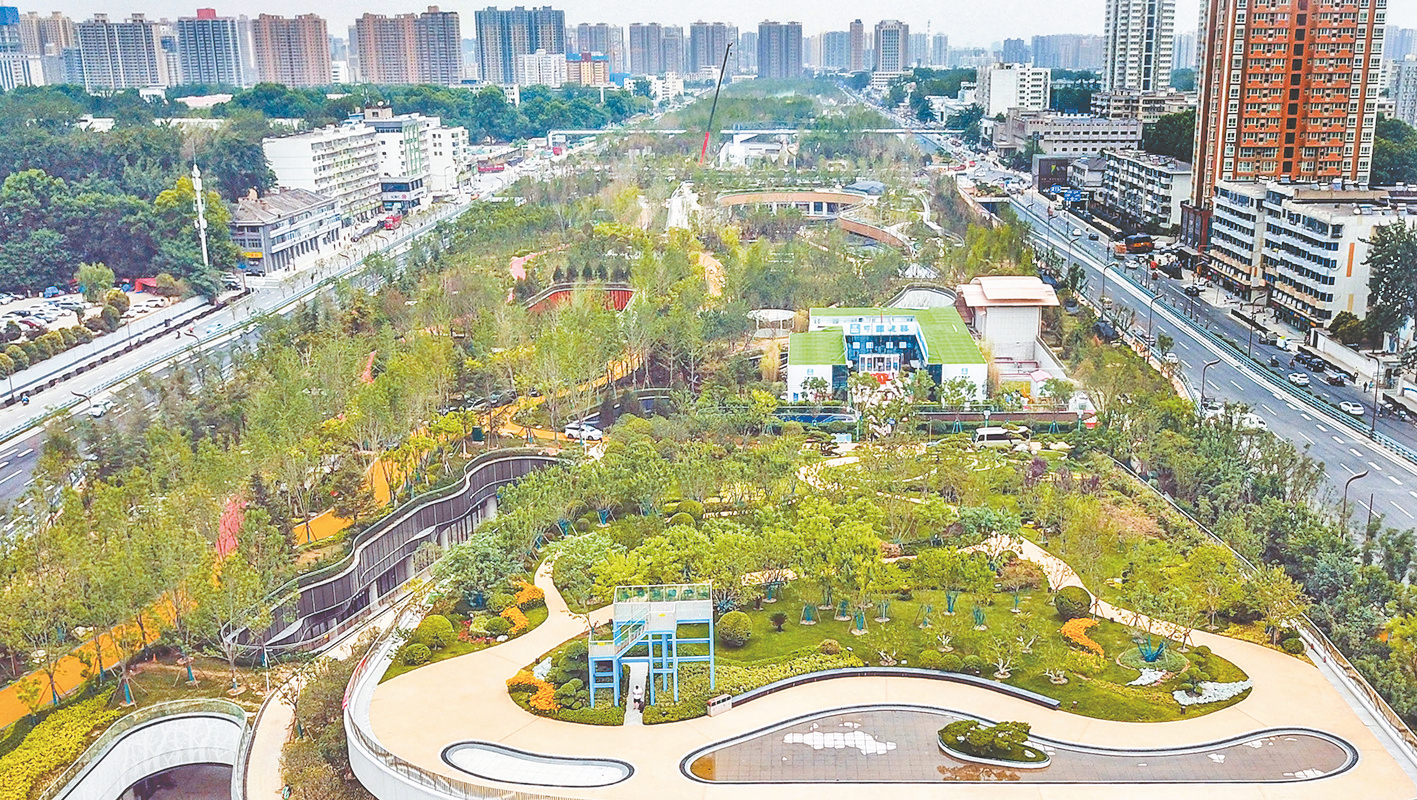 7月1日,西安幸 福林 带对 外开放。幸福林带项目位于幸福路和万寿路之间,南起新兴南路、北至华清路,全长 5.85 公里,平均宽度210米,占地1134亩。建成后的幸福林带将有效改善西安市东郊地区投资环境,提升城市整体形象,带动区域经济发展,并进一步改善周边区域的生态环境。图为幸福林带地面绿化景观。本报记者 孙雯 摄