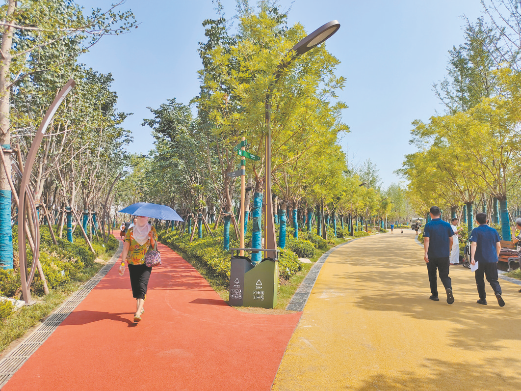 王女士从沣东新城而来。“我家门口就是地铁,坐上地铁不到三十分钟,来这里 特别方便。”王女士说,幸福林带开 放后,她第一次来,还在抖音上进行了 直播。“就 是想把这项民生工程介绍给更多的人,让他们也来这里打卡。”