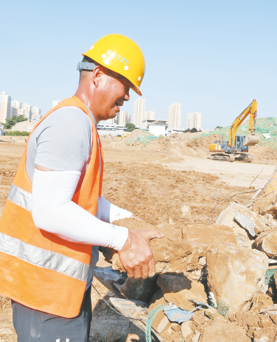 在车辆段运用库的施工现场,土方队的王师傅这几天要集中将场地内的石块等杂物进行人工筛选,回填过后筛选,再回填再筛选……像这样的同样工序一共要经历13次。“这活干得就是个眼明心细。”王师傅说。