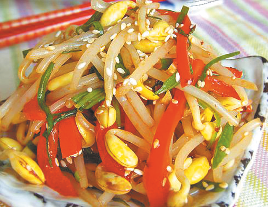 凉拌的开胃菜还有很多。如凉拌黄豆芽,就是一种营养丰富、味道鲜美的菜品。将鲜嫩的黄豆芽洗净去根,汆水、晾凉,加入精盐,拌均匀后,淋上酱油、辣椒油、香油、花椒油等调料,撒上葱丝即成。此菜麻辣够味,鲜香嫩脆,色泽美观。