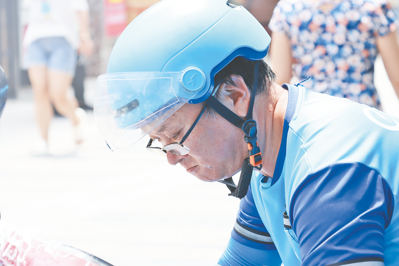记者观察到,为了防晒,骑手们把自己包裹得很严实,除了头上戴着头盔外,有人脸上还遮着防晒巾,还有人在冰袖外面穿件防晒服。外卖骑手刘师傅说,为了应对高温,他除了用手套、冰袖做好防护外,还会随身带一个杯子,里面装着解暑用的绿豆汤。对于高温下送餐,他表示,“辛苦是肯定的,饭点的时候单子多、时间急,有时来不及喝水、休息,只想着尽快把餐送出去。”