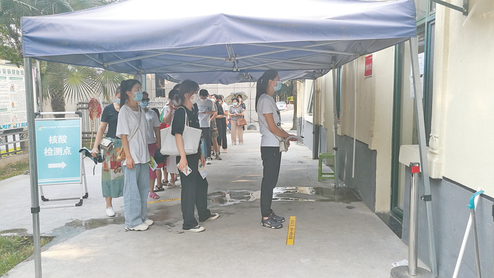 8月3日,在西安工会医院,医护人员张钒刚正在为市民做核酸检测。