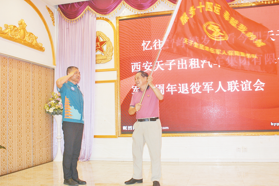 7月29日,西安天子出租汽车集团有限公司,为“服务十四运·奉献我的城”天子集团退伍军人保障服务队授旗。天子集团成立退伍军人保障服务队,旨在随时听从调度,为全力保障十四运顺利召开提供应急服务。