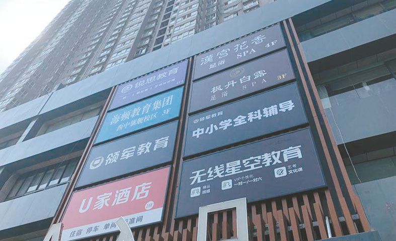 8月6日,记者在铁塔寺路上的自由际公寓看到,这里的各类教育培训机构、托管辅导中心扎堆,还时不时有小学生背着书包从培训机构走出来。一名小学生告诉记者,这个暑假,妈妈给他报了语文、数学、英语三个培训班,他暑假没有休息,直到现在还天天在上课。