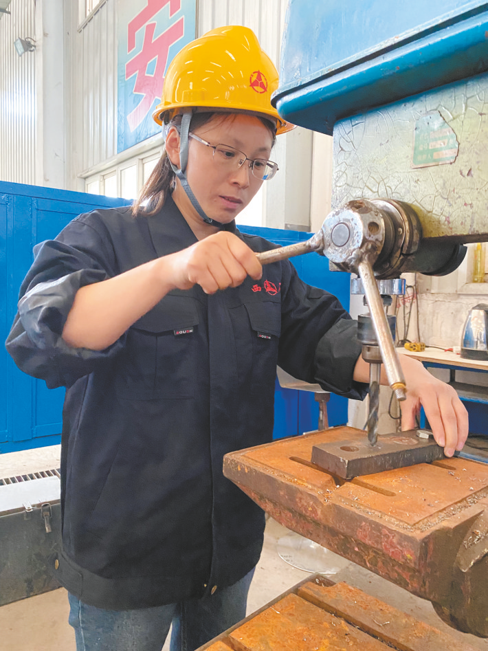 西安石油机械有限公司主要从事特种作业车的改装和石油机械设备的制造,刚进厂时,考虑到“85后”范莉红个子不高,瘦瘦的,力气小,厂里分配给她的工作,只是些钻孔机床及零部件毛刺的打磨、清理焊渣等,技术含量不高。但范莉红骨子里有股倔劲儿,要干有技术含量的事。那时候,范莉红只要闲下来就跑去厂里的老师傅身边“偷着学”,遇到问题就记在本子上,向技术大拿请教。这时,范莉红遇到了人生中十分敬重的技术标杆何维全。