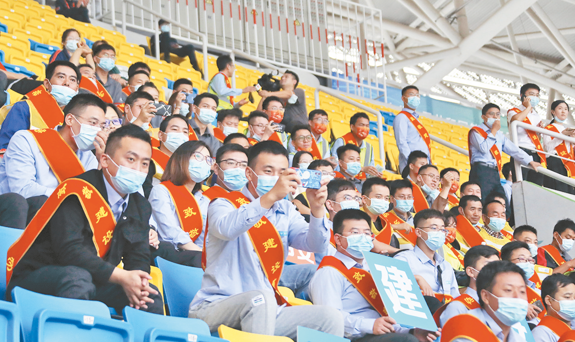 举世瞩目的第十四届全国运动会正在隆重有序进行,全运会的成功举办,离不开场馆建设者的不懈奋战、辛勤付出。