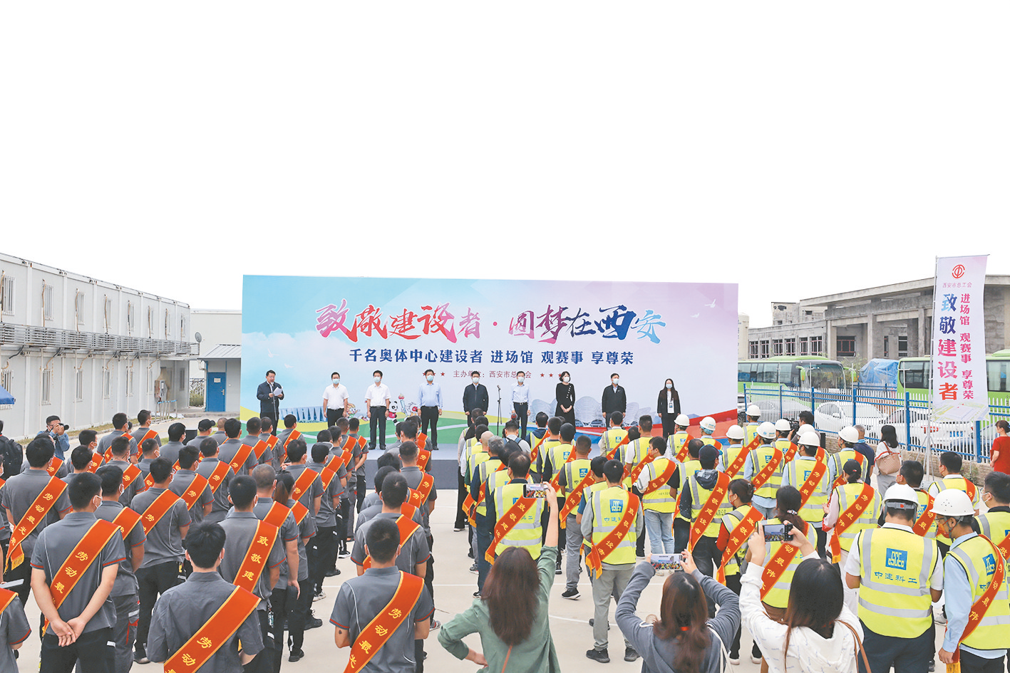 他们是参与第十四届全运会“一场两馆”及配套项目的建设者代表,也是西安市总工会组织开展千名全运场馆建设者“进场馆、观赛事、享尊荣”活动的首批观众。