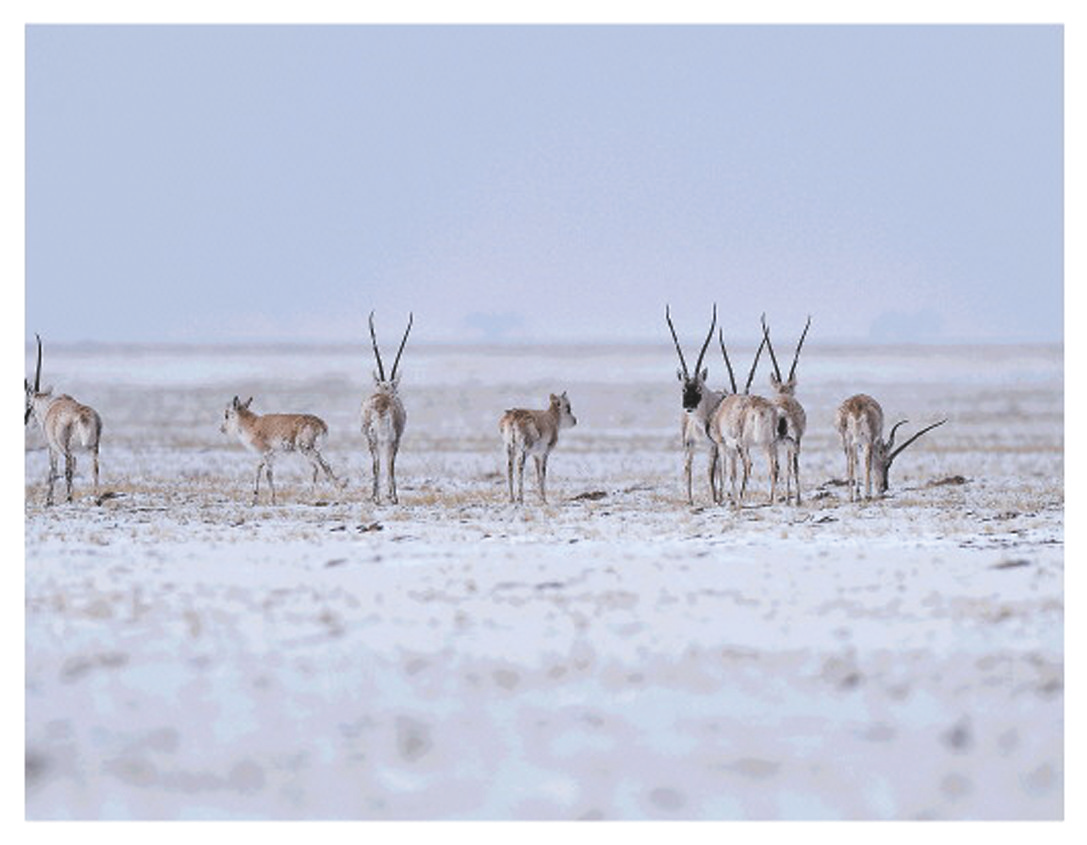 藏羚羊在三江源可可西里地区活动(资料图)。 新华社记者吴刚摄
