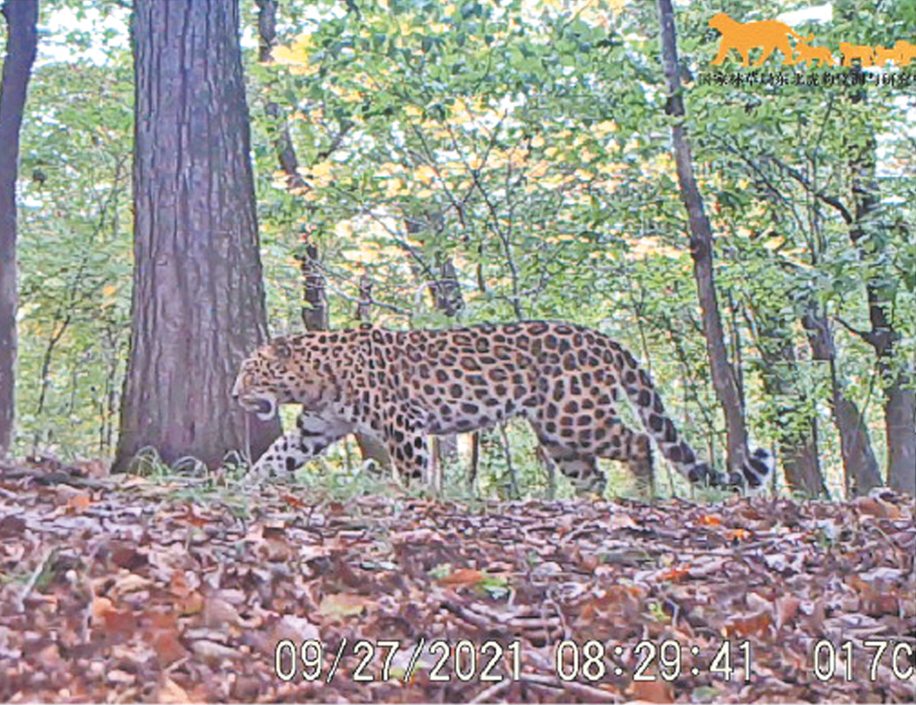 这是架设在东北虎豹国家公园的远红外相机拍摄到的野生东北豹影像(视频截图)。新华社发12日,国家主席习近平在以视频方式出席《生物多样性公约》第十五次缔约方大会领导人峰会并发表主旨讲话时指出,中国正式设立三江源、大熊猫、东北虎豹、海南热带雨林、武夷山等第一批国家公园,保护面积达23万平方公里,涵盖近30%的陆域国家重点保护野生动植物种类。