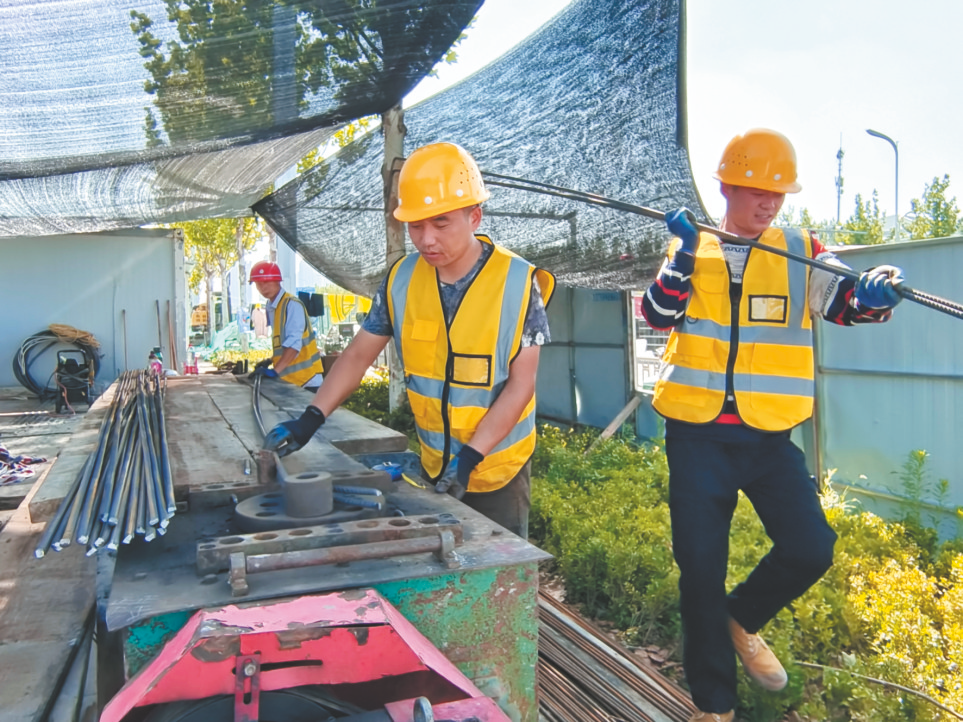 秦汉大道上,“西安经开区坚强电网攻坚电力沟道”项目工地,一面简易的遮阳罩下,手戴劳保手套的王小刚,带领工友在忙碌地扎钢筋,每扎好一捆就两个人奋力抬到卡车上,再及时送到别处工地。“‘高考’还在后头呢,过几天,建造电井时,我们将完全暴露在炎阳下,那才是面临考验的时候。”只干了两个轮回,王小刚便抬起上衣袖口,擦擦额头上的汗水,接着一仰头,一杯白开水咕噜咕噜就下肚了。