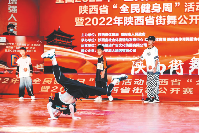 第14个“全民健身日”刚刚过去,9日上午,2022年陕西省街舞公开赛在咸阳市体育馆举行,街舞爱好者通过“以舞会友”的方式,为刚刚启动的陕西省“全民健身周”系列活动添光彩。