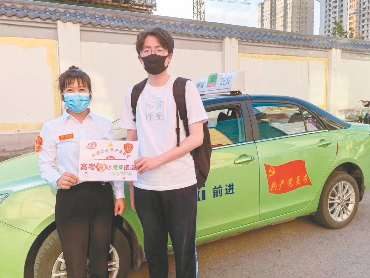 ▲ 西安市出租汽车驾驶员许建莉护送考生至考点6月7日至8日,是2022年陕西省高考时间。十年寒窗苦读日,只为一朝金榜题名时。今年,西安市共有64070人参加高考,全市设13个考区、79个考点、2206个考场。考场内,万千学子正奋笔疾书,用纸笔书写着未来;考场外,各相关部门积极行动,做好各项保障服务工作。