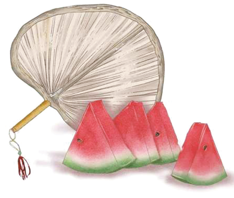 蒲扇是乡下生活里必不可少的纳凉工具,有的是买的现成的,有的是自己制作的。小时候最喜欢看爷爷制作蒲扇,看爷爷魔法般的手艺,看他把一片片巨大的蒲葵树叶子变成握在手里的蒲扇。从山野中采回带着露水的蒲癸树叶子,连枝带叶,青青翠翠的,把枝干修剪成合适的长短就成了蒲扇的柄,执于手中,反复使用,汗水就浸润其中,整个扇柄闪着亮光,握在手中越用越舒服。青翠的叶子就是天然的扇面,爷爷稍作修剪就把下一道工序交给了奶奶,奶奶就拿自己喜欢的布条沿着叶子的走向用针线缝好,再压平实了,在太阳底下一晒,那扇面就变成了浅黄色,古色古香,轻轻一摇,那风儿就带上了一股淡淡的清香味儿。