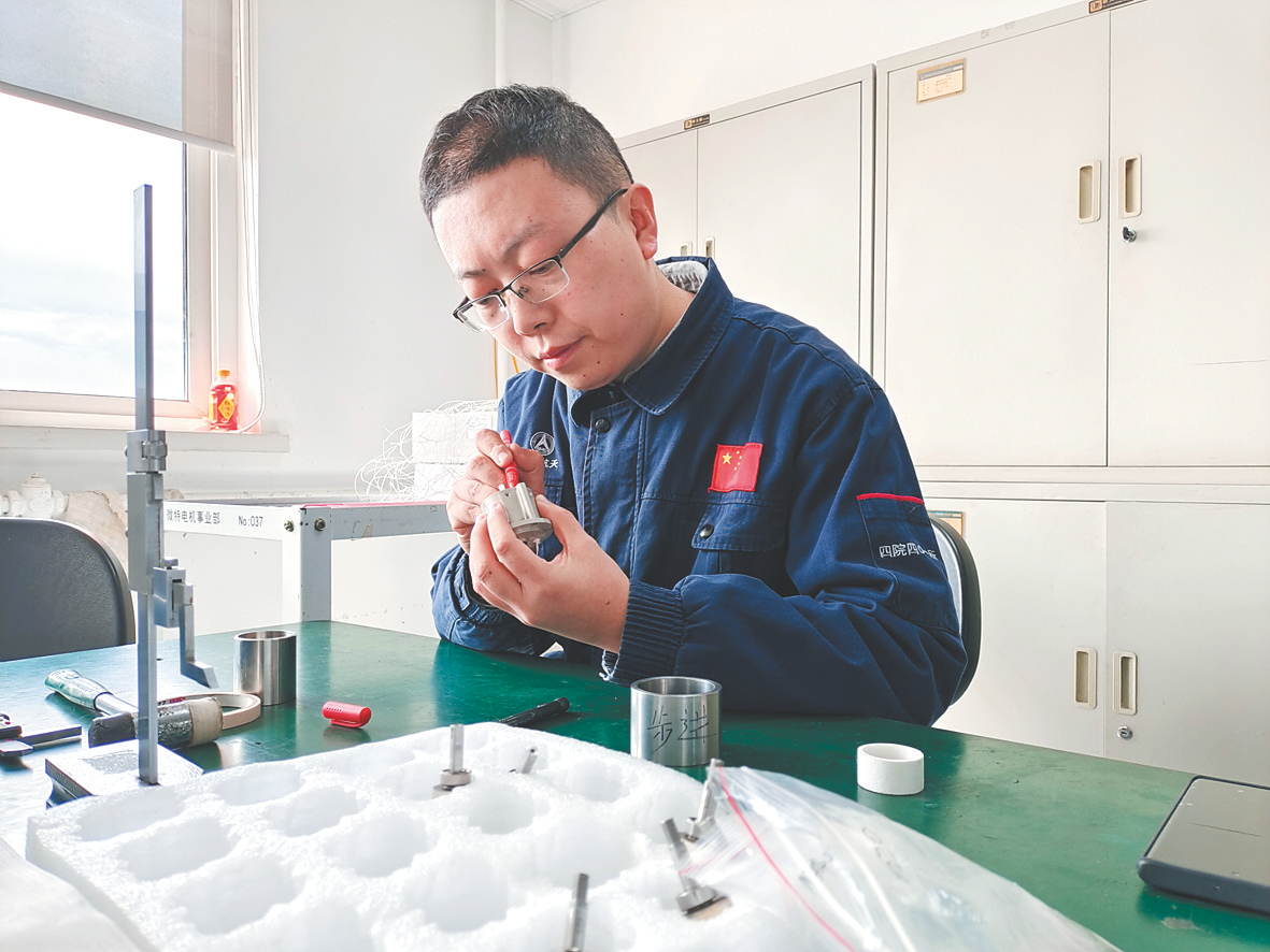 10月10日,航天四院401所微特电机事业部车间里,34岁的设计师胡博全神贯注地检查新型电机产品装配质量。