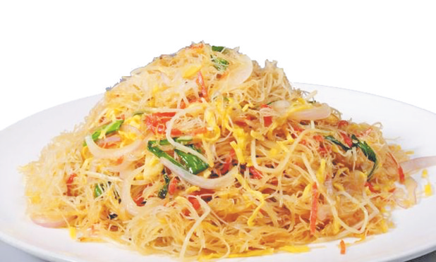 一到饭点,旁边的快餐店就变得无比忙碌,食客络绎不绝。我非常喜欢看快餐店的老板娘炒菜,透过两店相隔着的帘子缝隙,看她不断翻炒着各种食材。在她所炒过的各色菜肴中,令我印象最为深刻的就是蛋炒粉,巧的是,这些来来往往的食客,最爱的偏偏也是那道蛋炒粉。