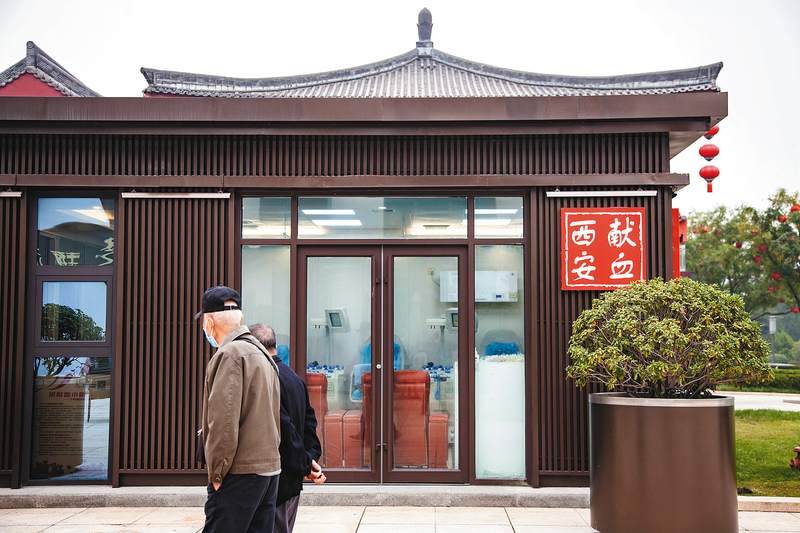 目前全市建有9座爱心献血屋,10辆房车和7辆流动采血车。相对于流动采血车,献血屋的面积大,有征询区、体检区、检验区、采血区,分区更合理,环境更舒适,所以采血效果也更好。图为大雁塔景区的爱心献血屋。