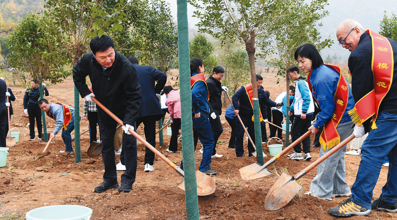 11月16日,由陕西省总工会和省林业局共建的“劳模林”启动暨揭幕仪式在秦岭国家植物园举行。省人大常委会副主任、省总工会主席郭大为出席启动仪式,并与劳模代表、职业院校学生代表一起植下“劳模林”第一批树苗。
